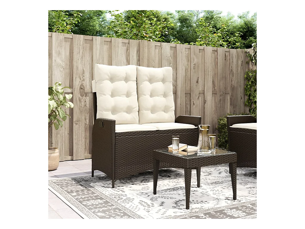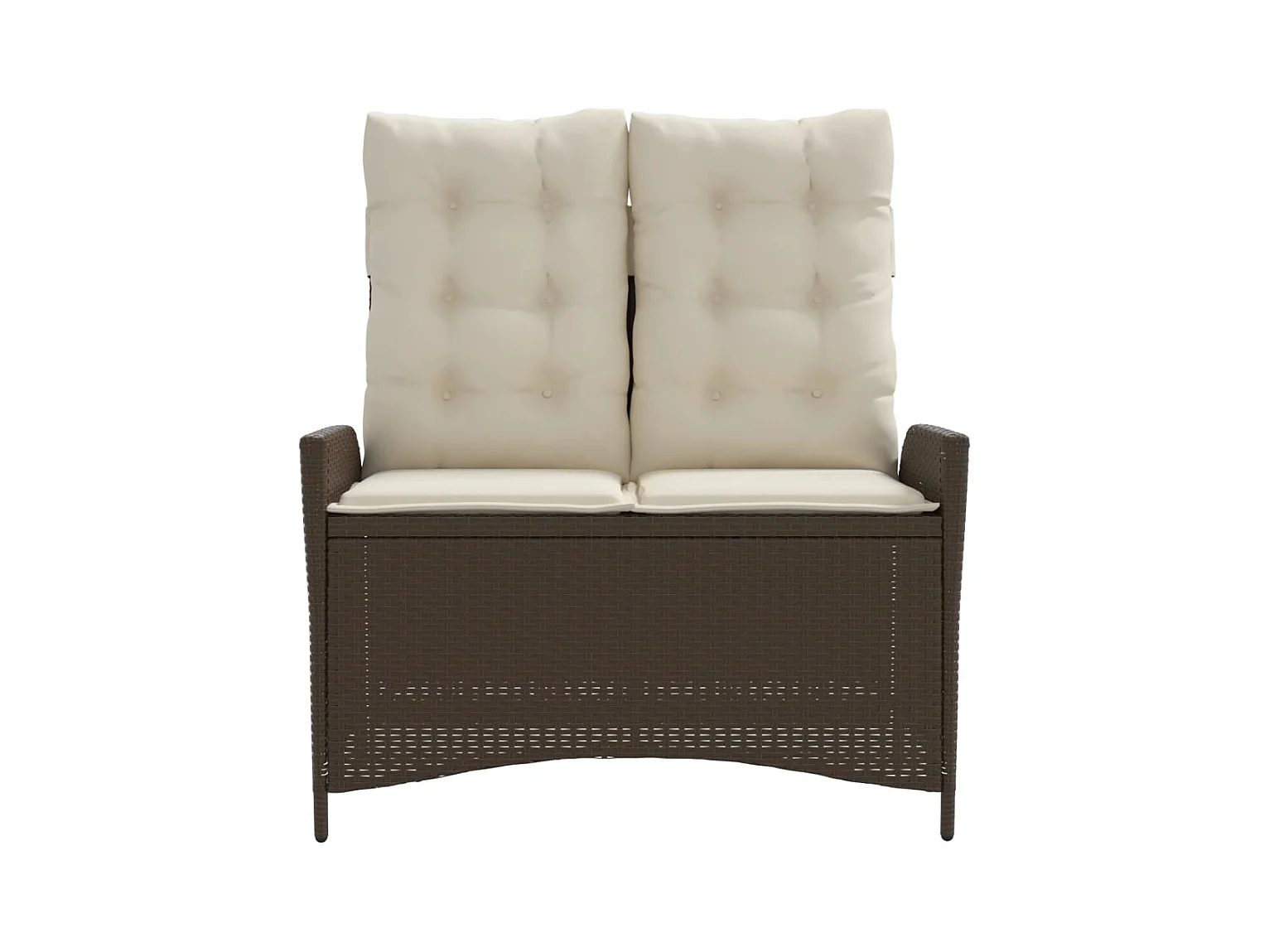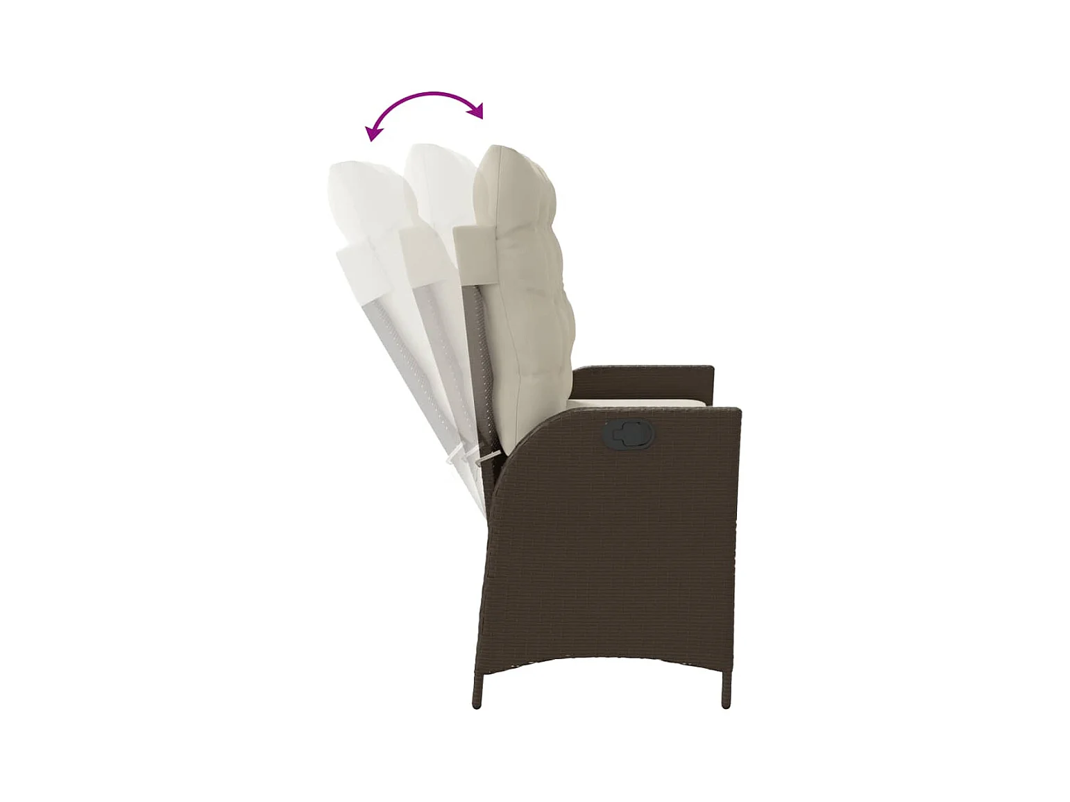 Liggende tuinbank met bruine kunsthars rieten kussens