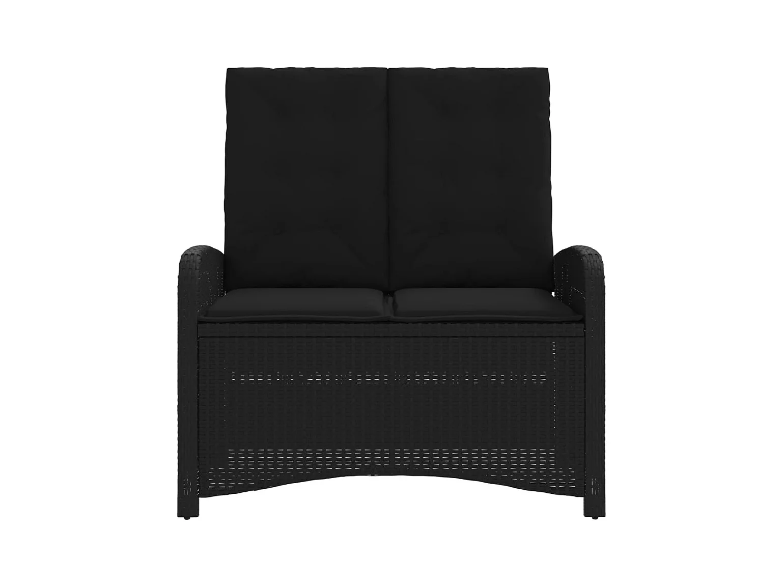 Liggende tuinbank met zwarte kunsthars rieten kussens