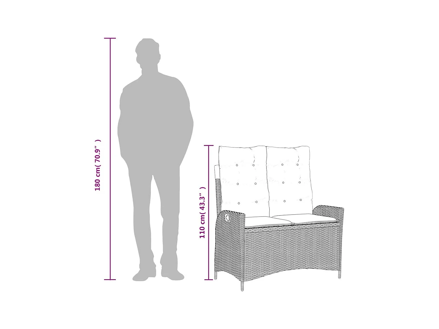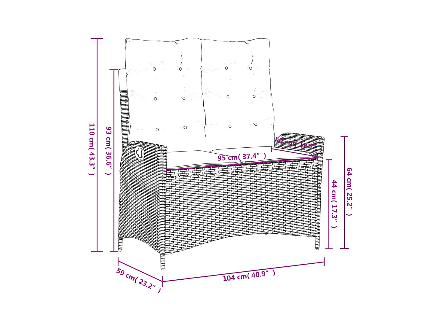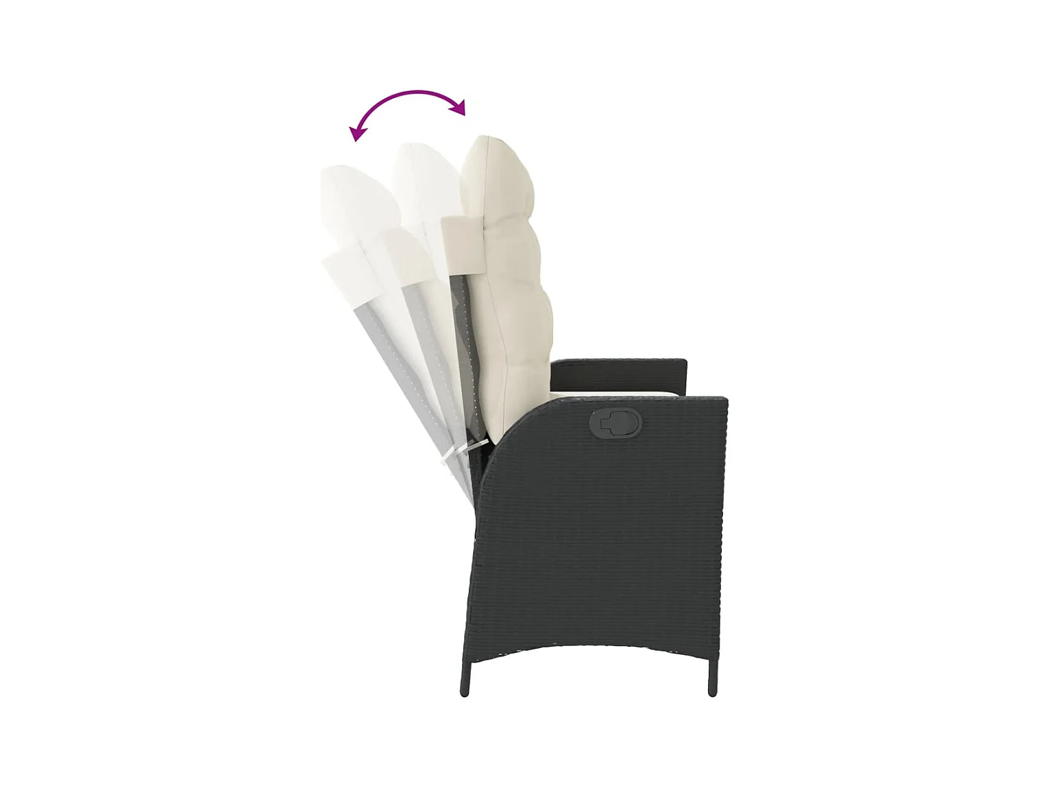 Liggende tuinbank met zwarte kunsthars rieten kussens