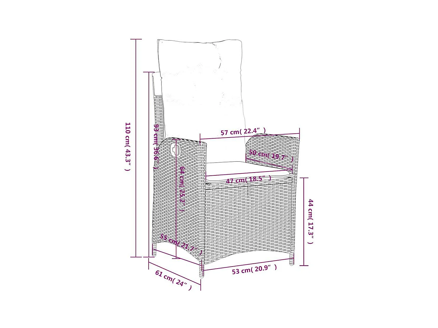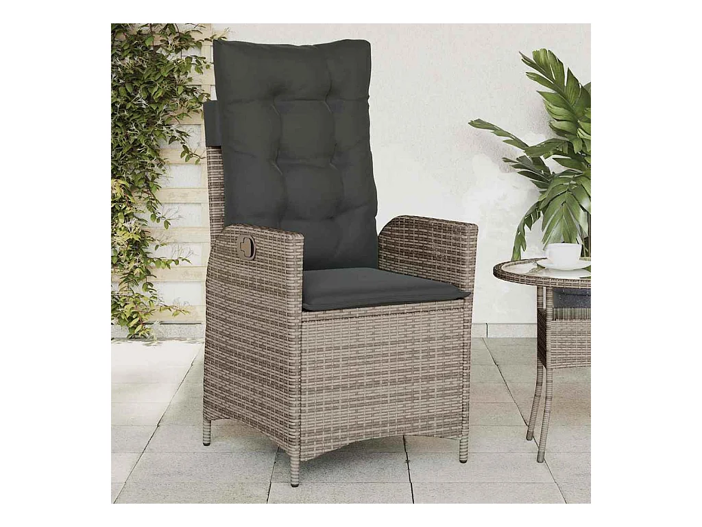 Liggende tuinstoel met grijze kunsthars rieten kussens