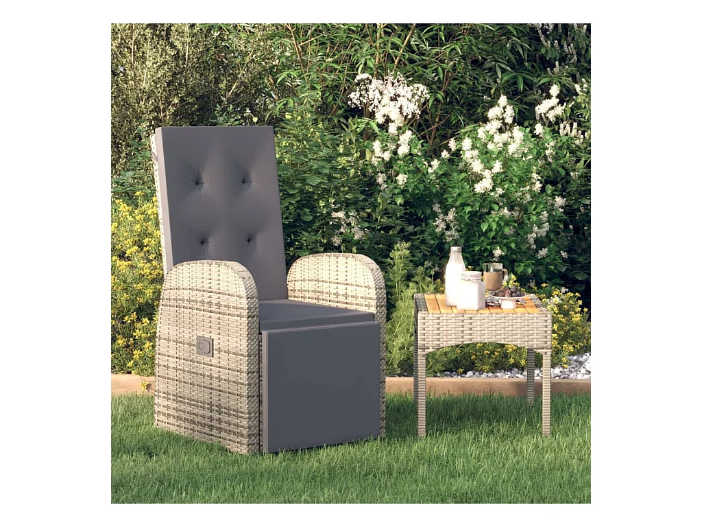 Liggende tuinstoel met grijze kunsthars rieten kussens