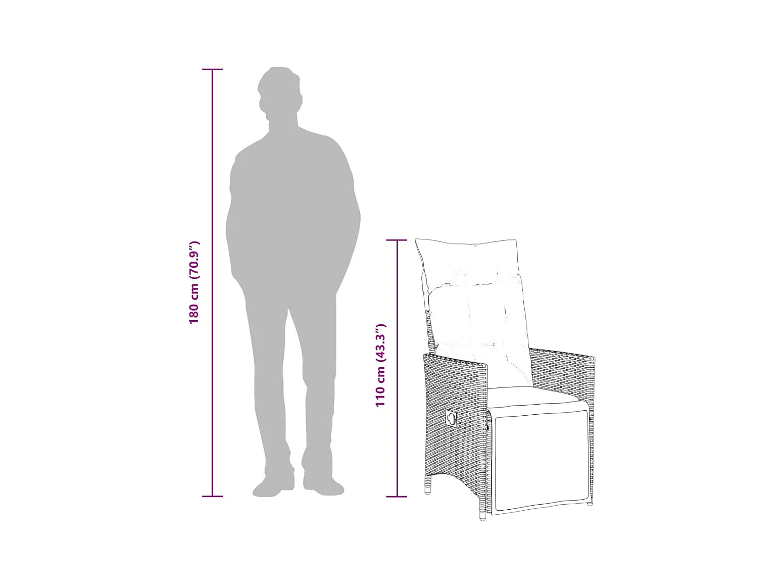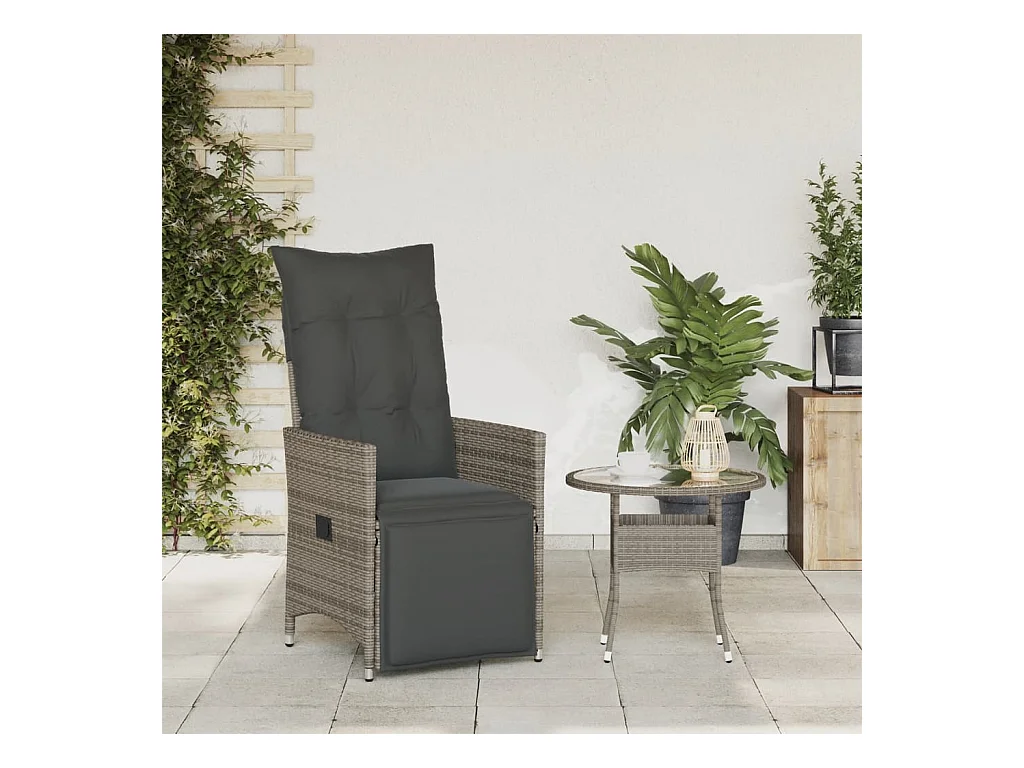Set van 2 verstelbare tuinstoelen met grijze rotan kussens