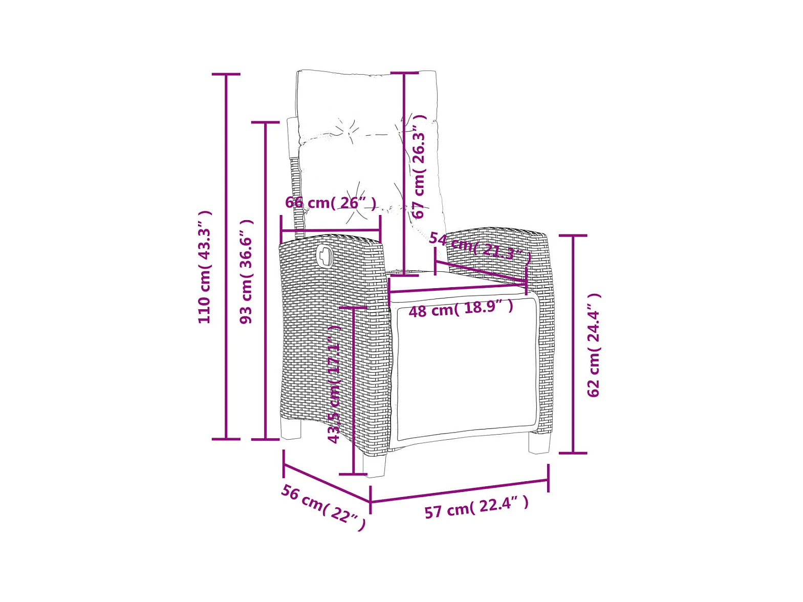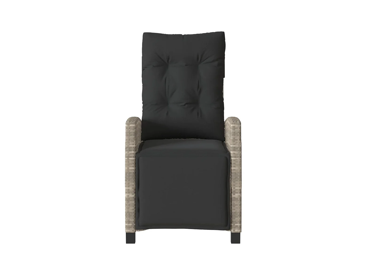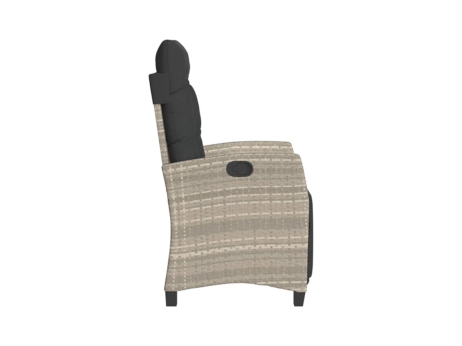 Liggende tuinstoel met voetenbankje lichtgrijs rotan