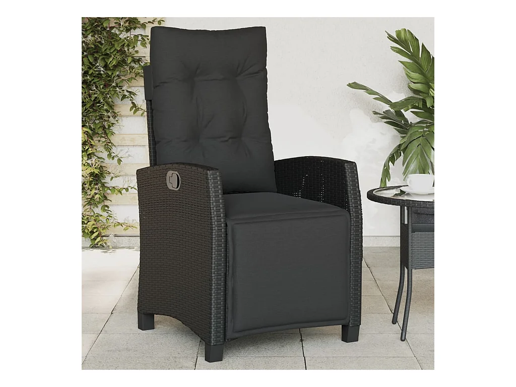 Liggende tuinstoel met zwarte kunsthars rieten kussens