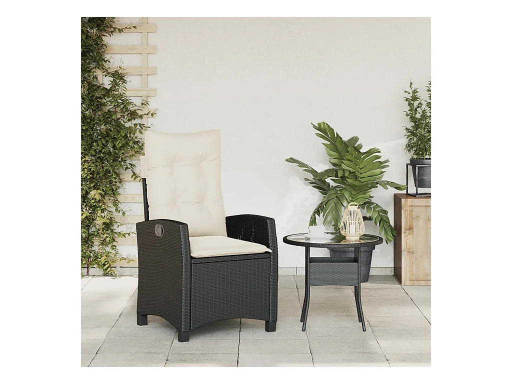 Liggende tuinstoel met zwarte kunsthars rieten kussens