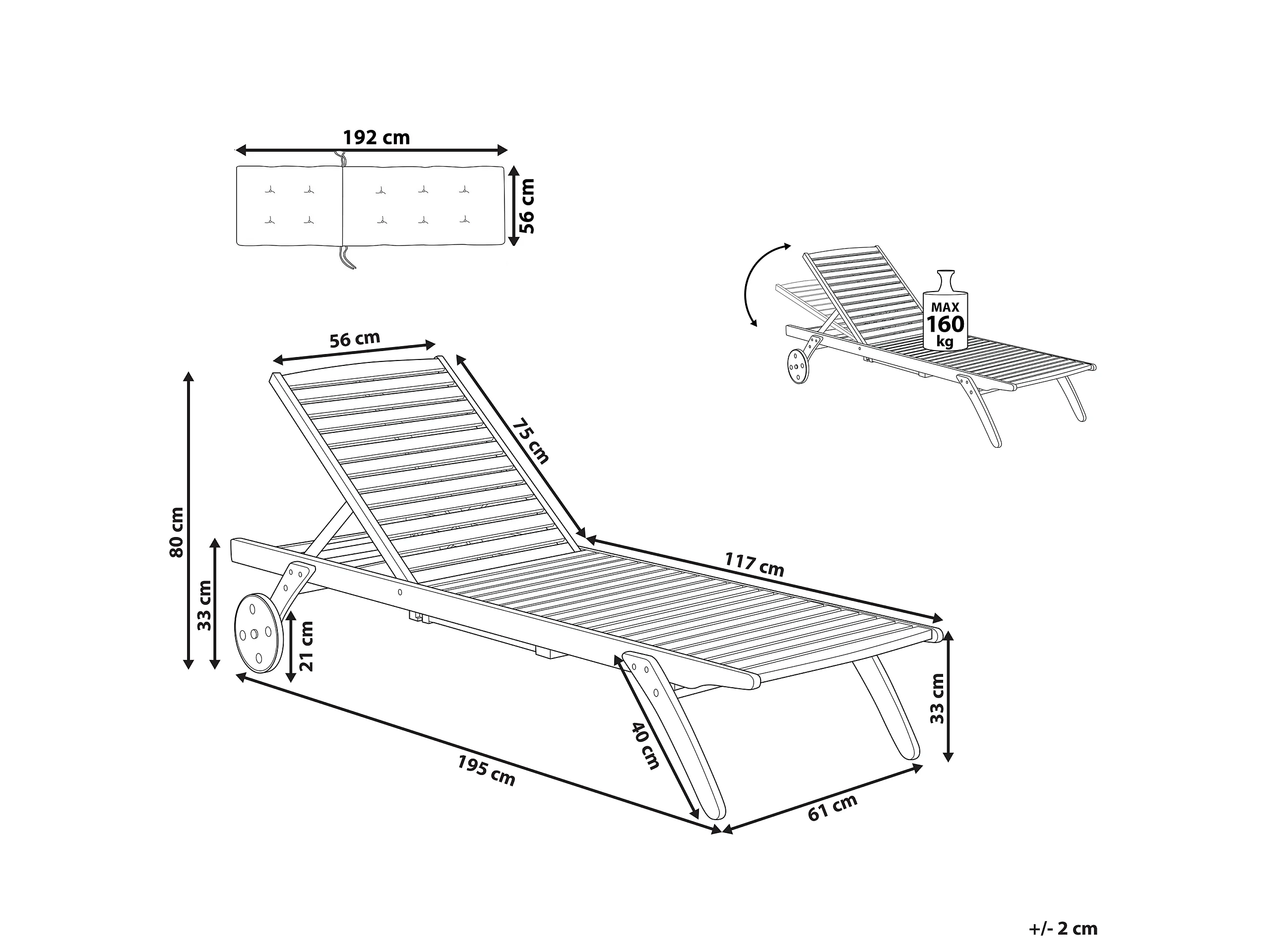 Ligstoel met kussen CESANA Acaciahout Blauw