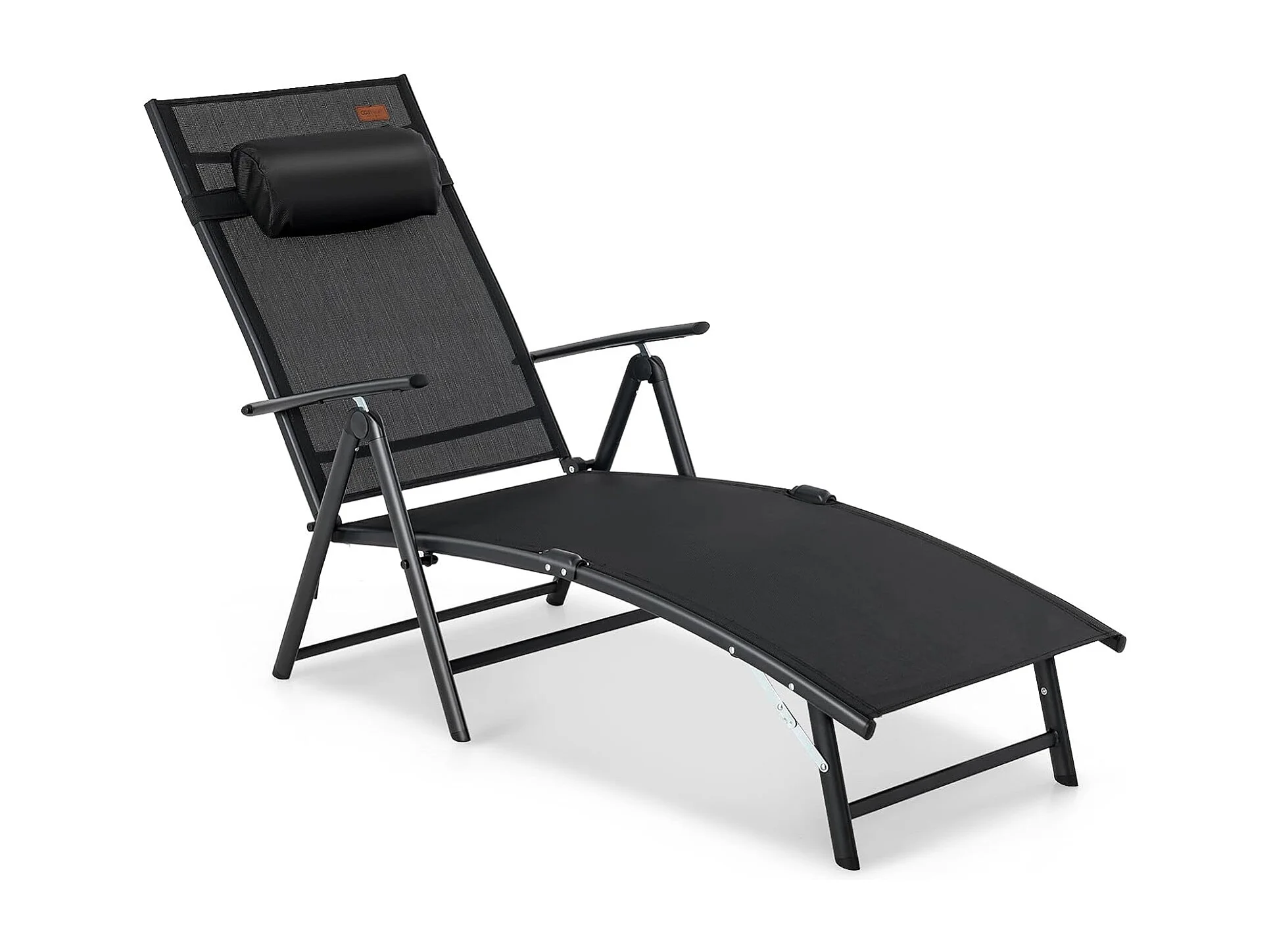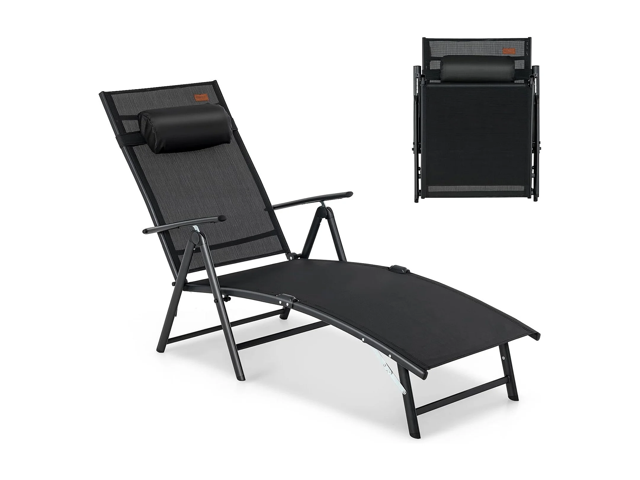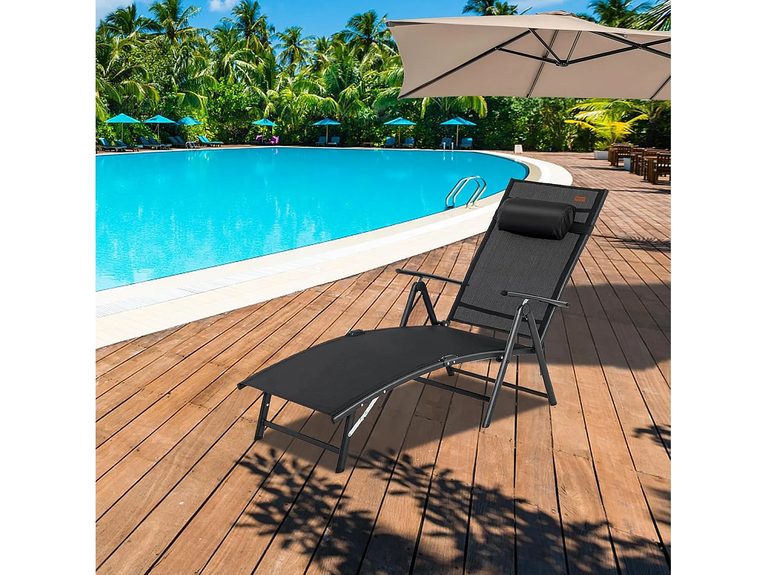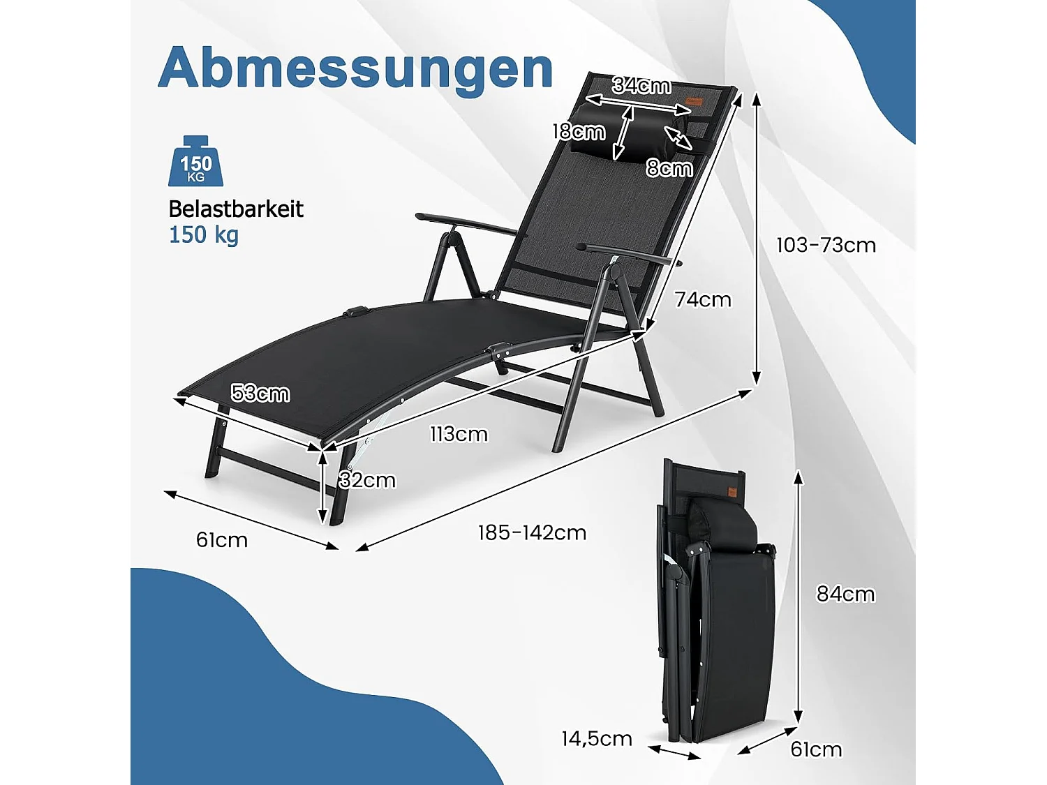 Ligstoel, inklapbaar, ligstoel met hoofdsteun, 7 verstelbare rugleuningen, inklapbare ligstoel, draagbare ligstoel voor tuin, achtertuin, balkon, zwartZB33350