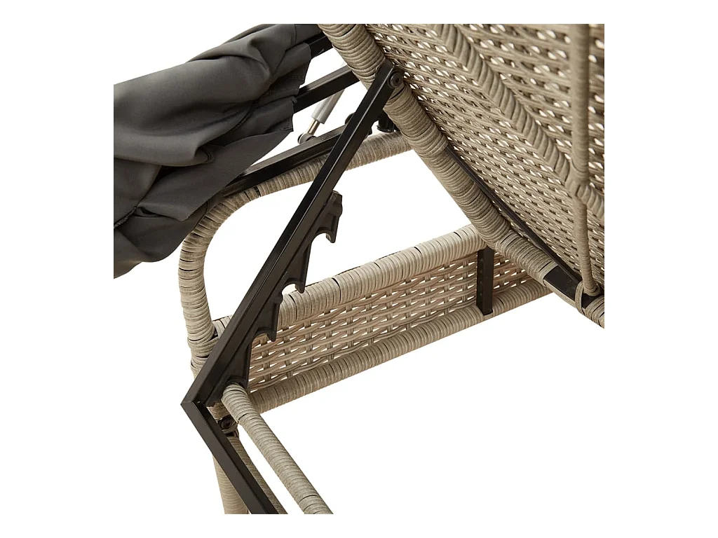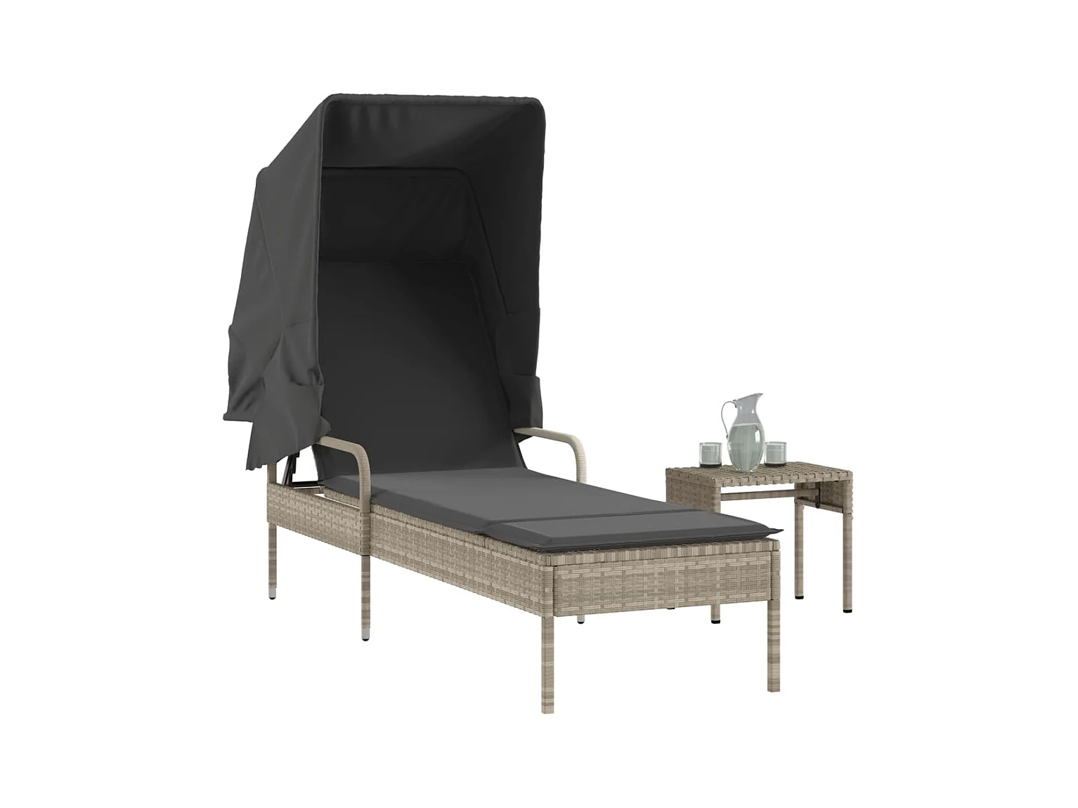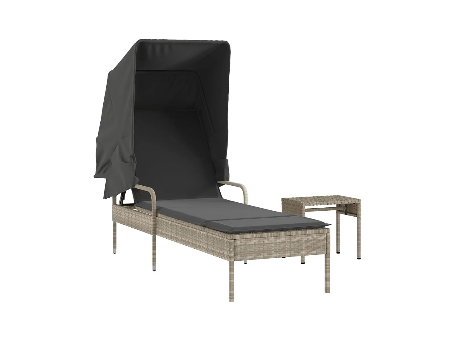 Loungestoel met luifel en tafel in grijs geweven hars