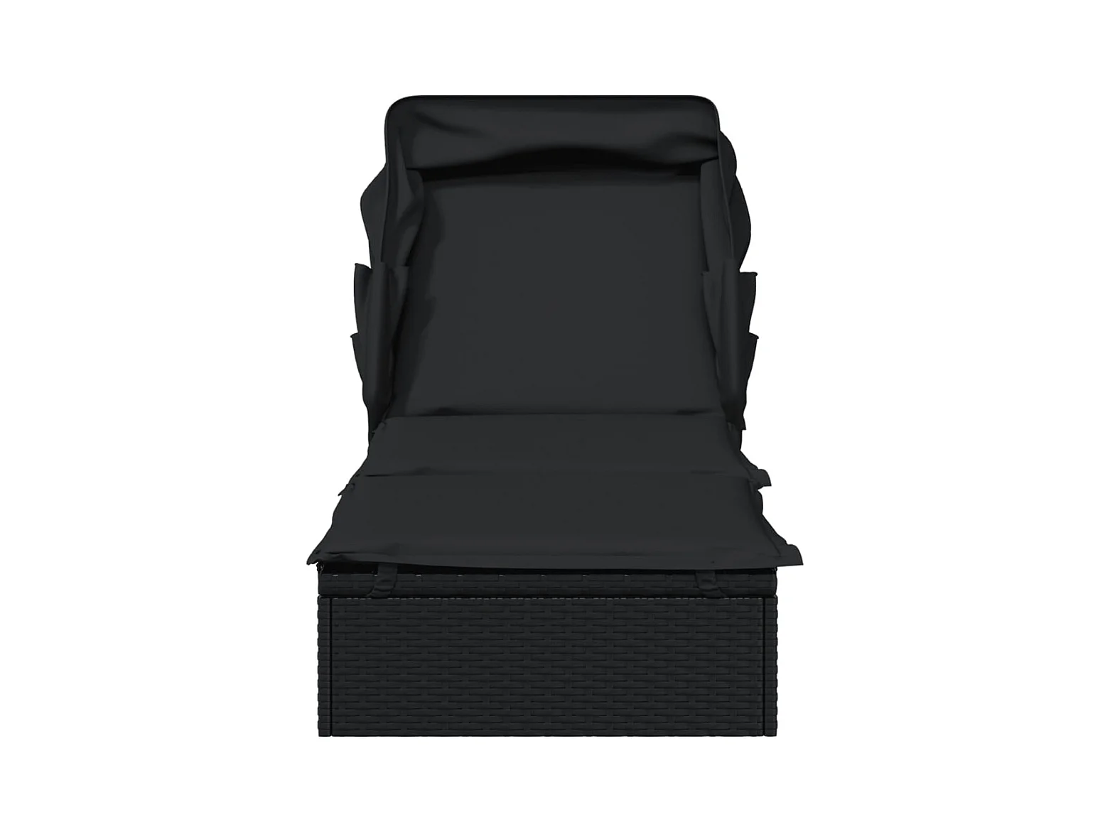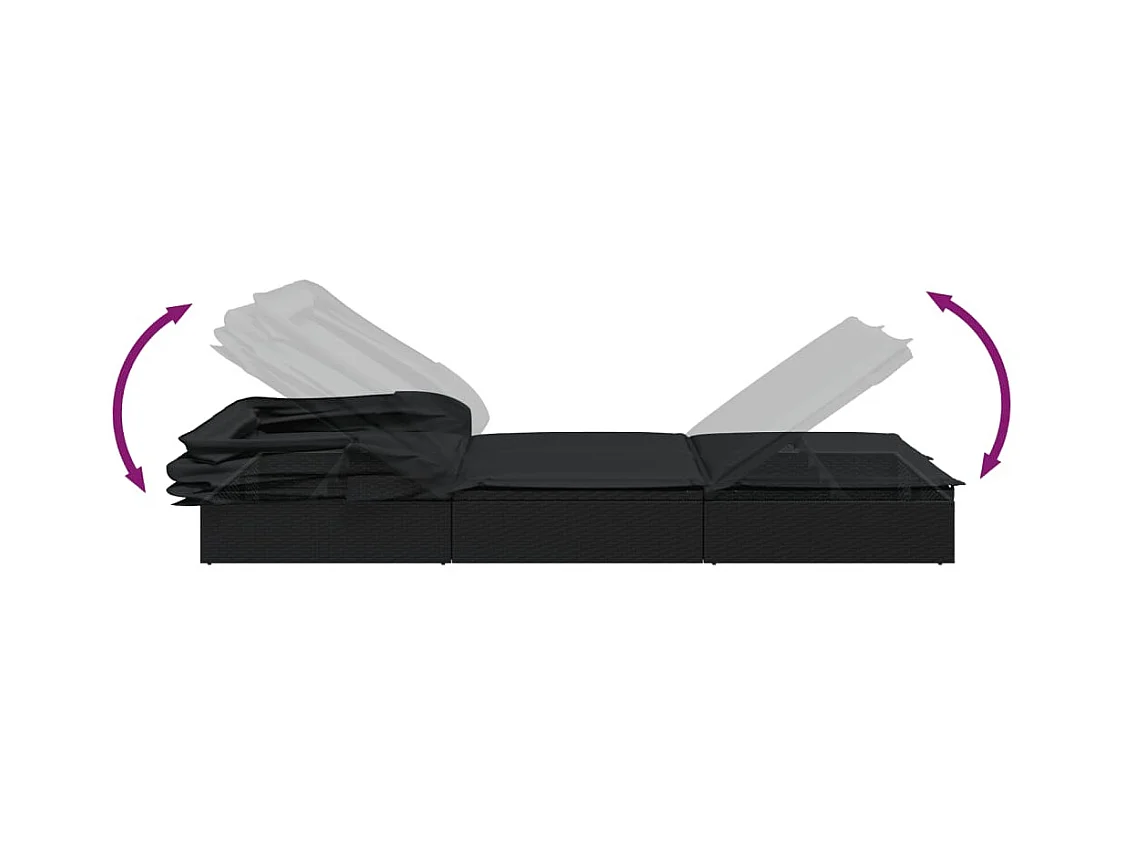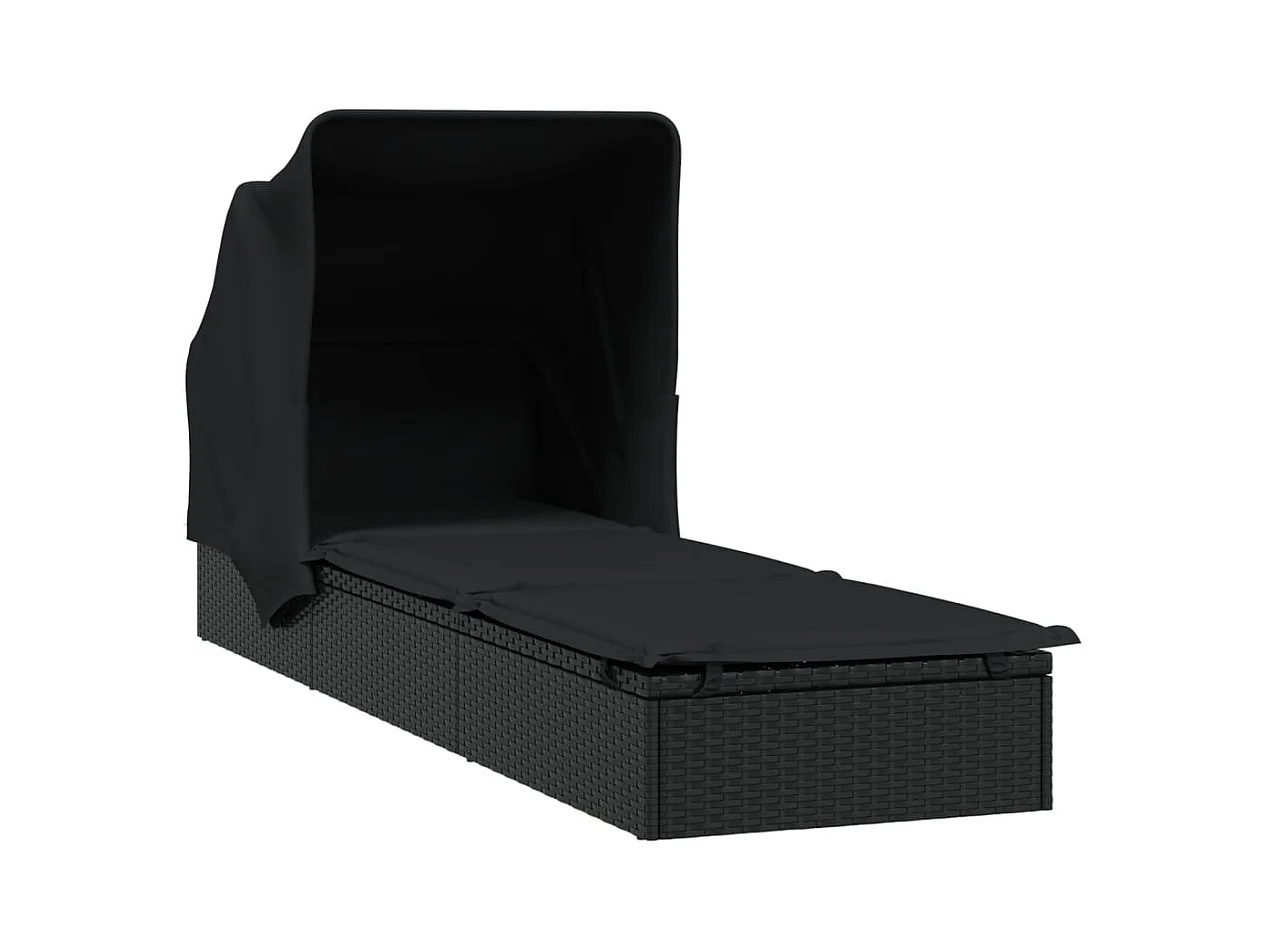 Ligstoel met zwart opvouwbaar dak 213x63x97 cm geweven hars