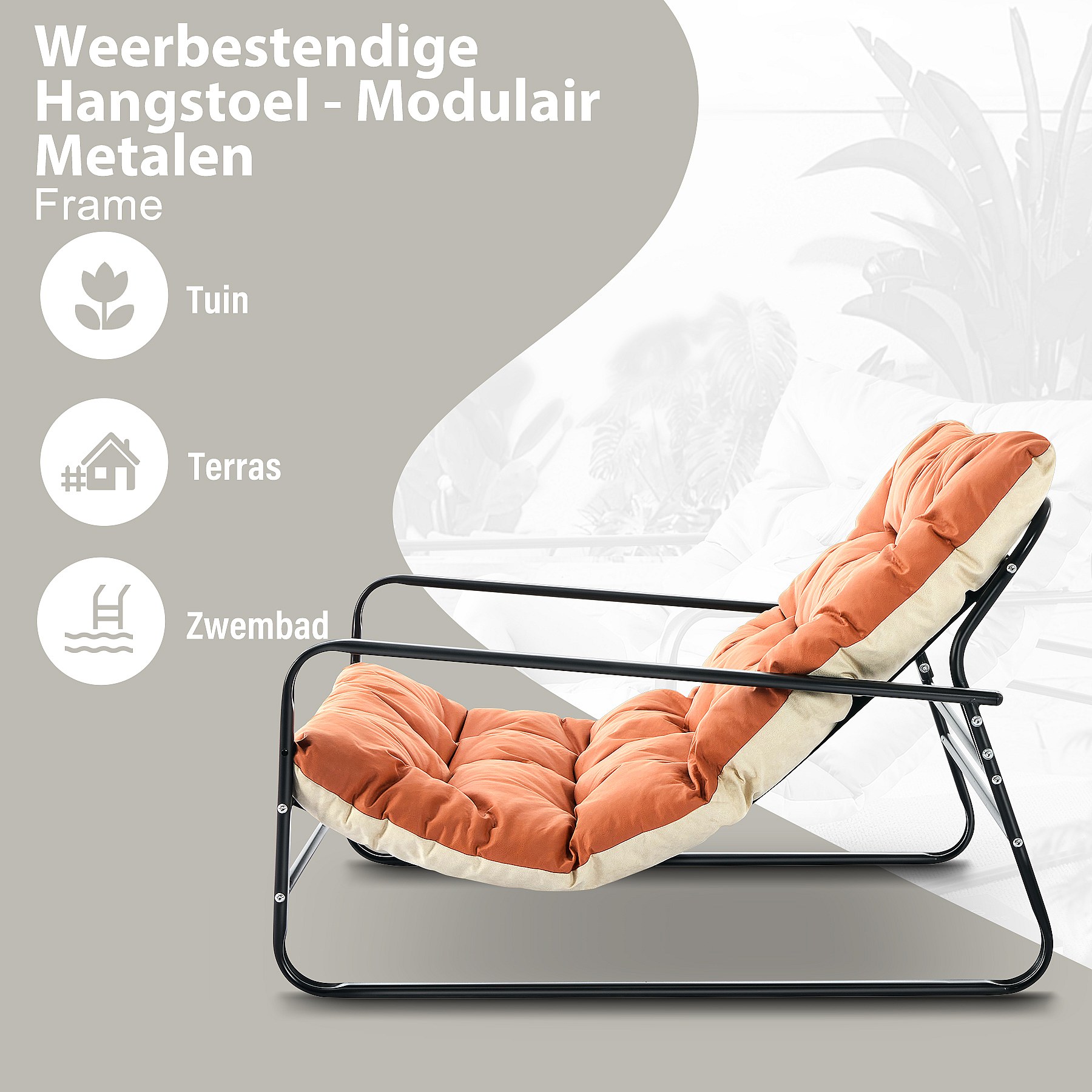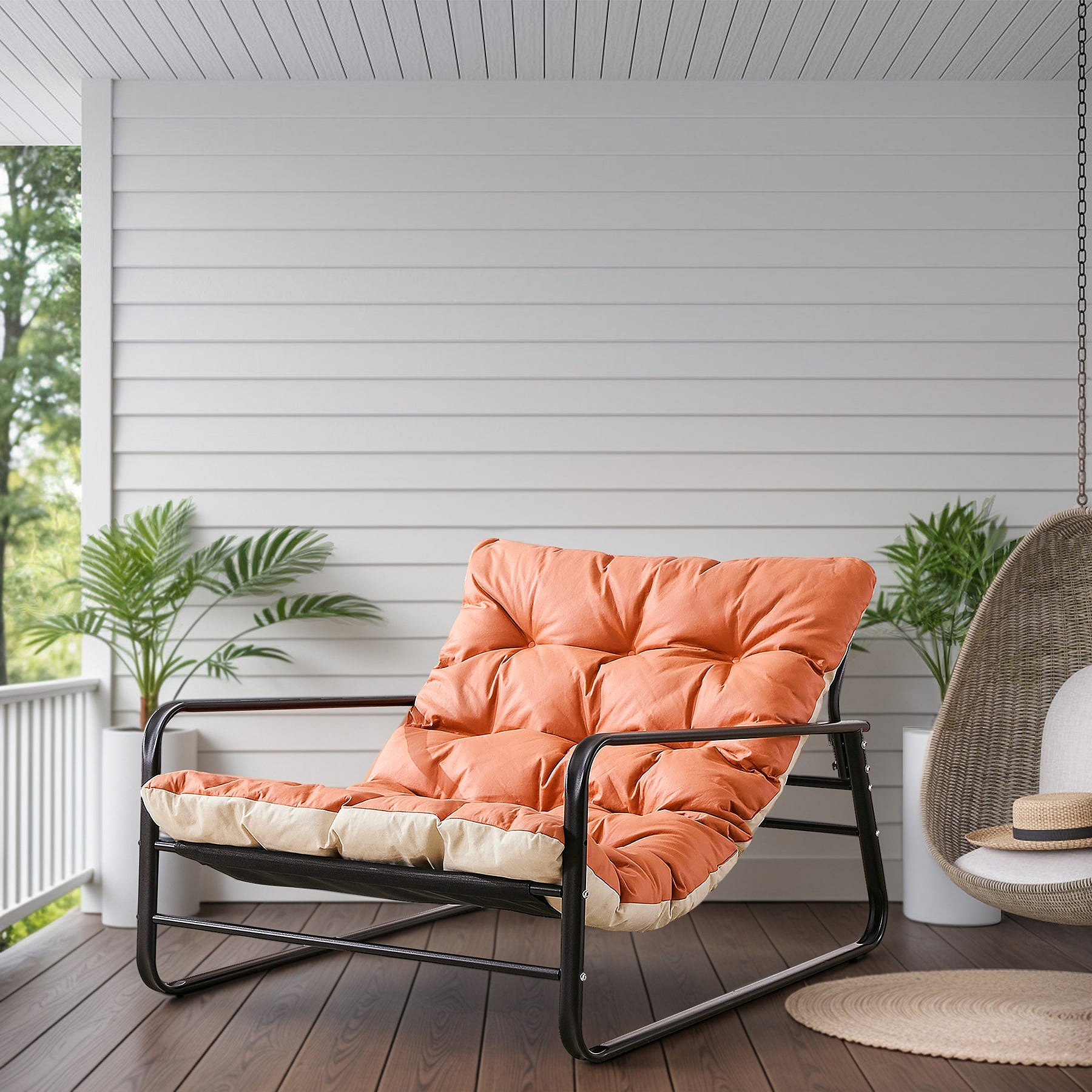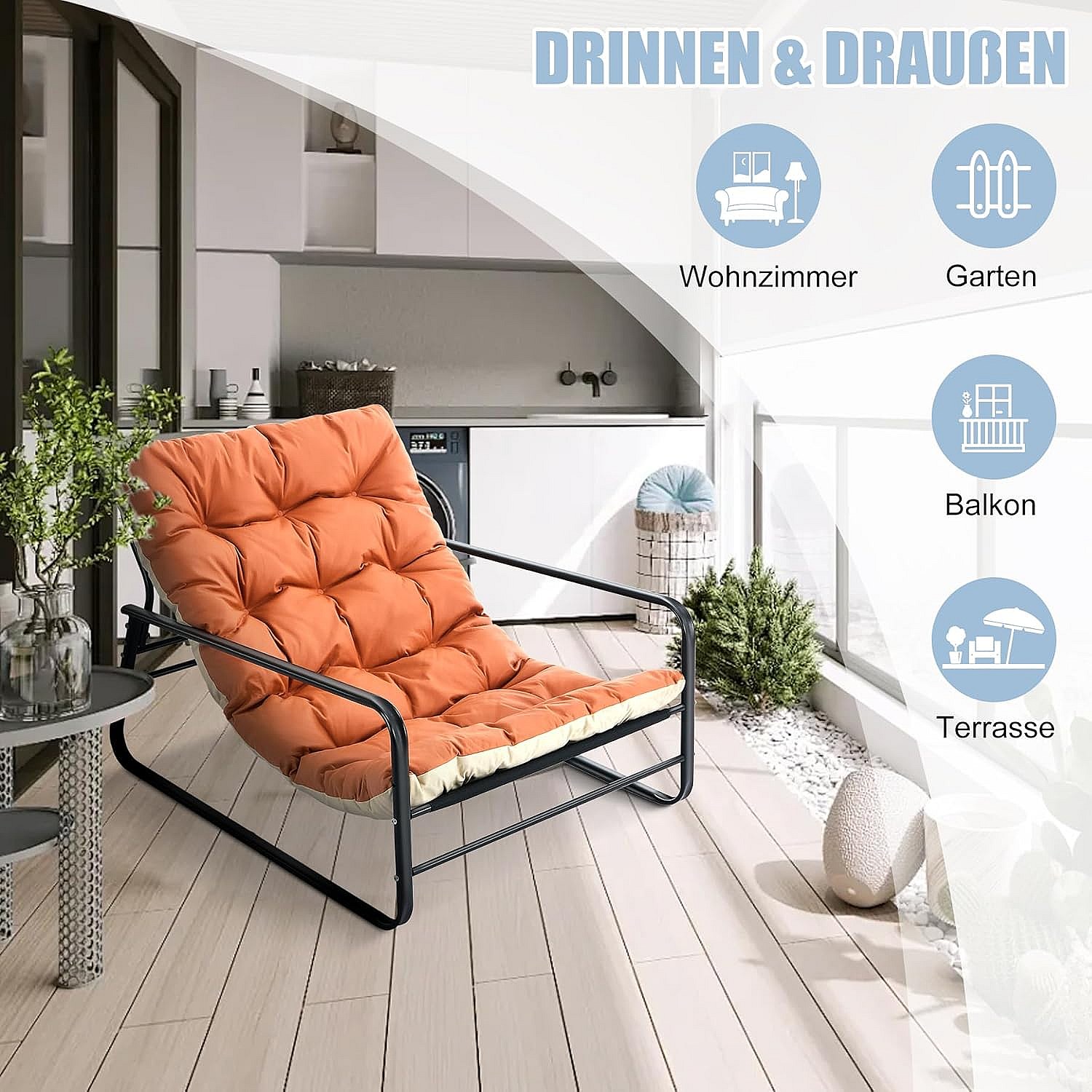 Ligstoel, relaxstoel, tuinligstoel met omkeerbaar kussen, stalen balkonstoel, 2-persoons fauteuil, buitenmeubilair, terras (Oranje+Beige)"