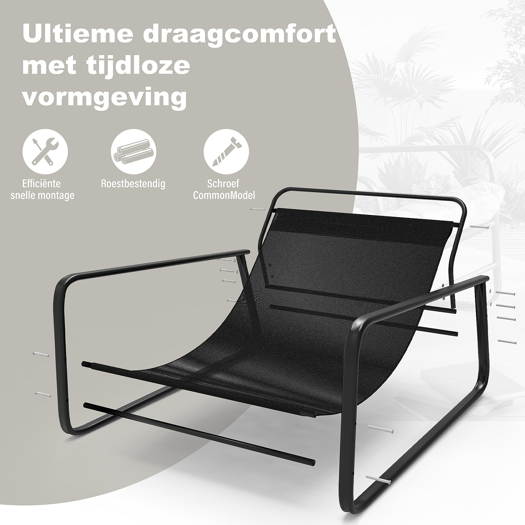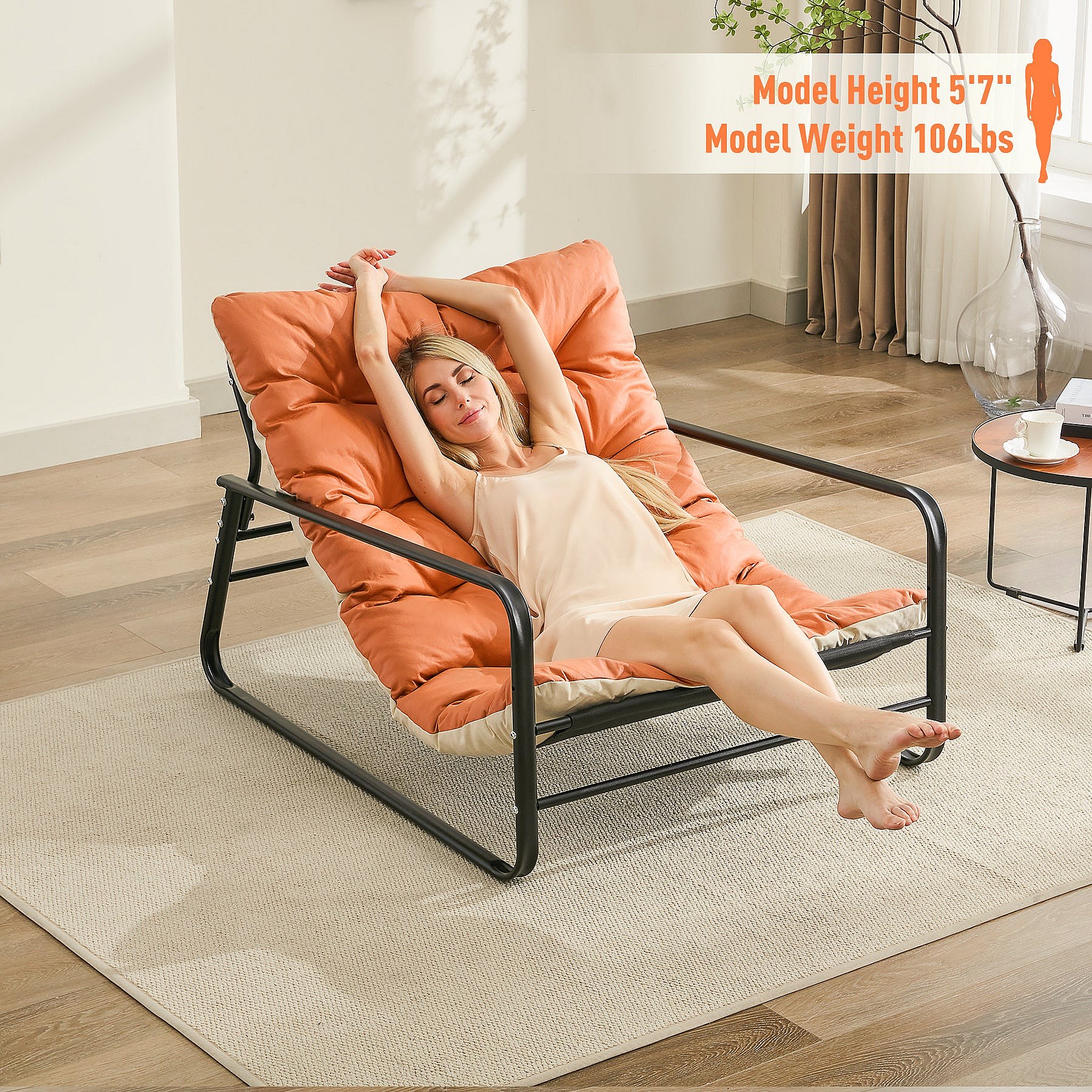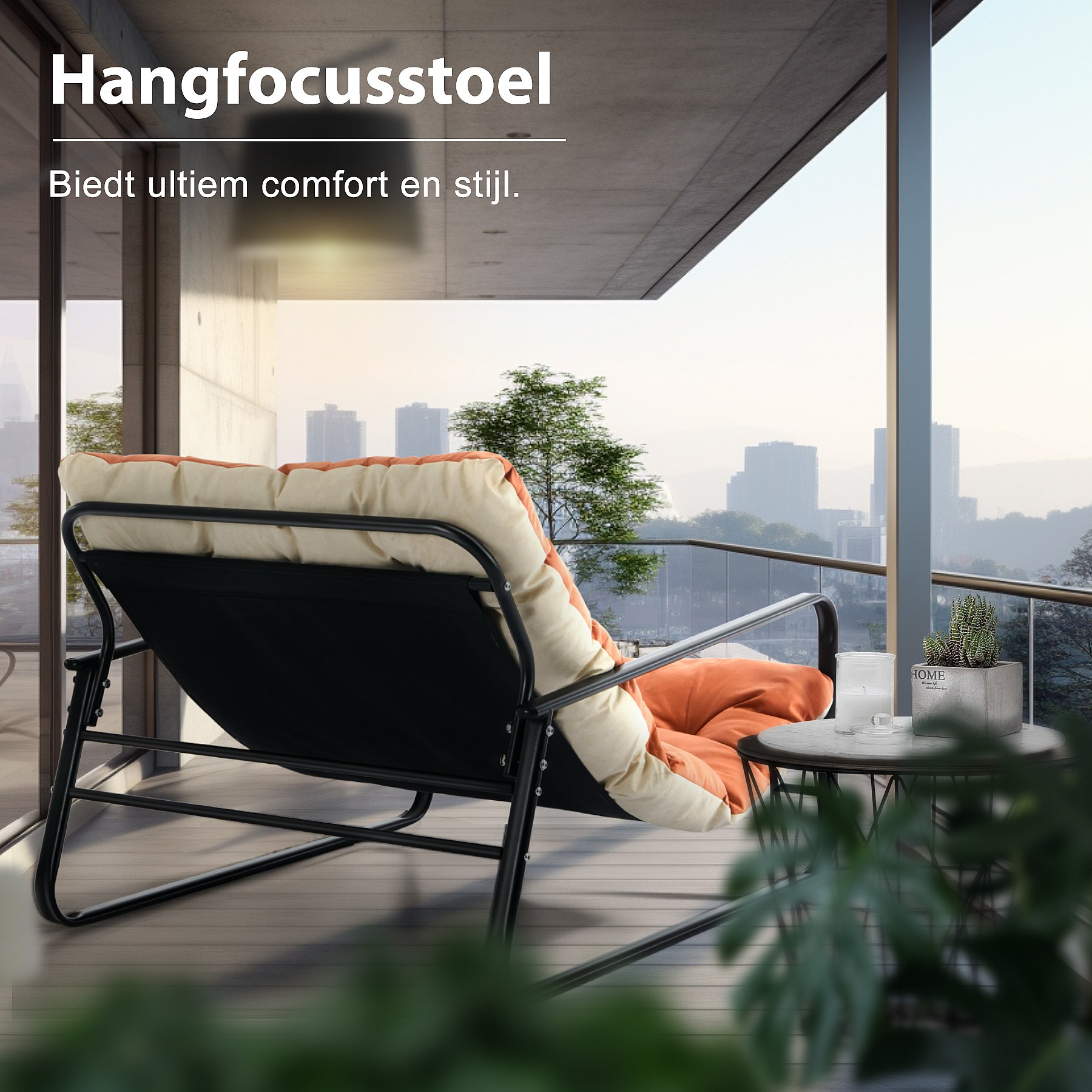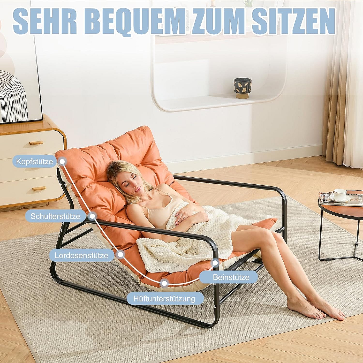 Ligstoel, relaxstoel, tuinligstoel met omkeerbaar kussen, stalen balkonstoel, 2-persoons fauteuil, buitenmeubilair, terras (Oranje+Beige)"