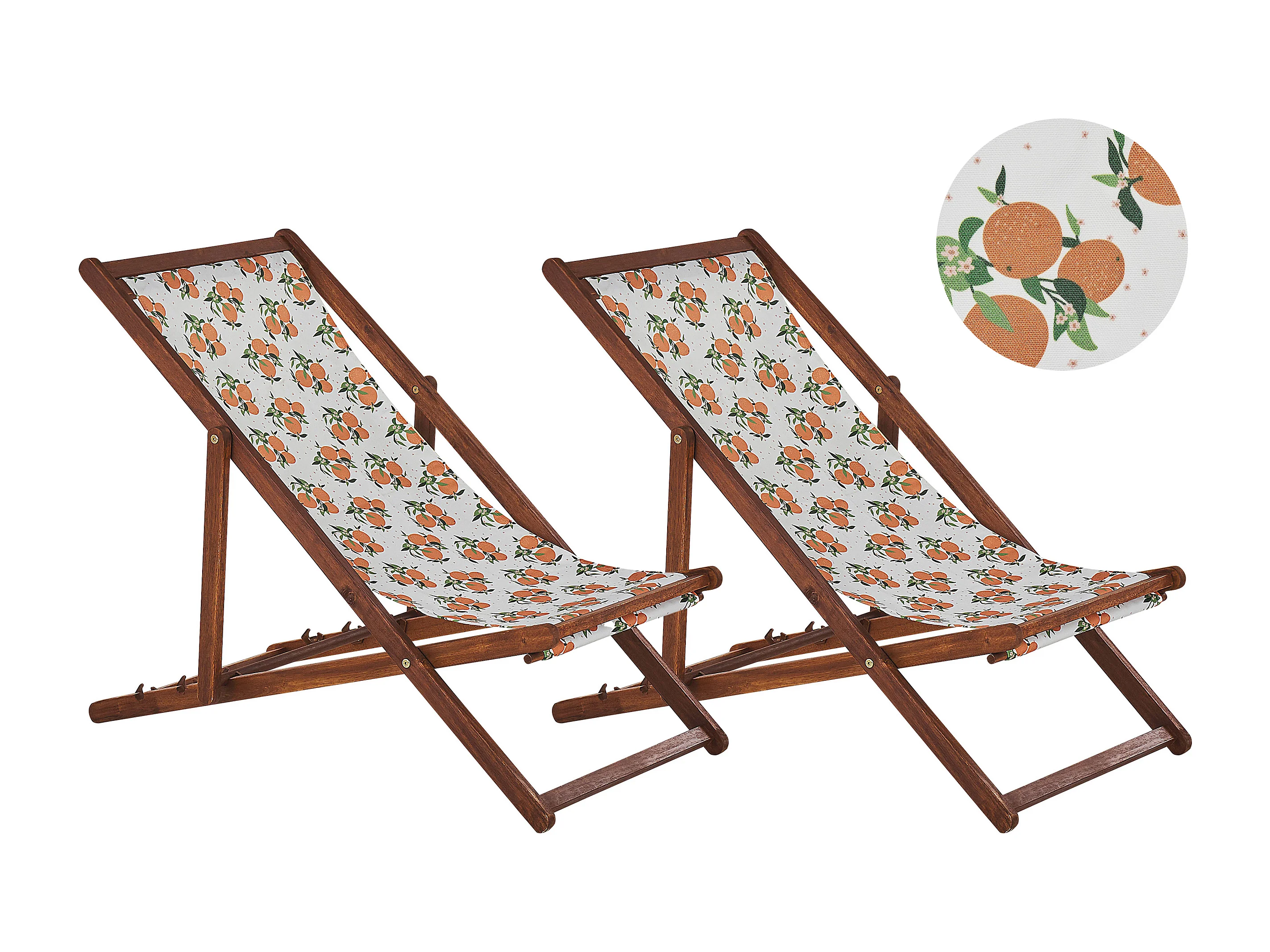 Set van 2 inklapbare ligstoelen ANZIO met vervangende hoezen Bloemen motief Acaciahout Donkerbruin