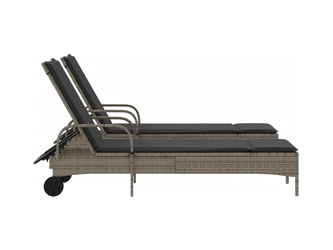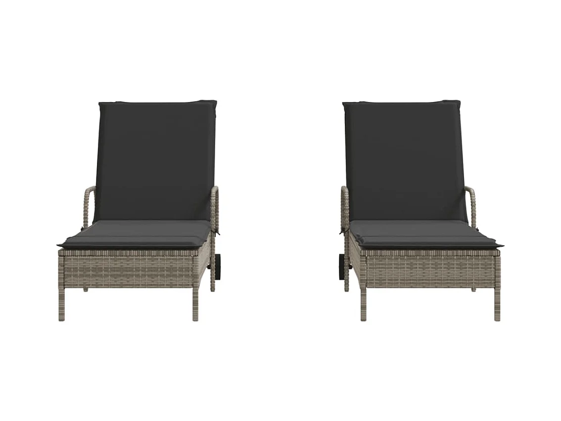 Ligstoelen 2 st met kussen poly rattan lichtgrijs