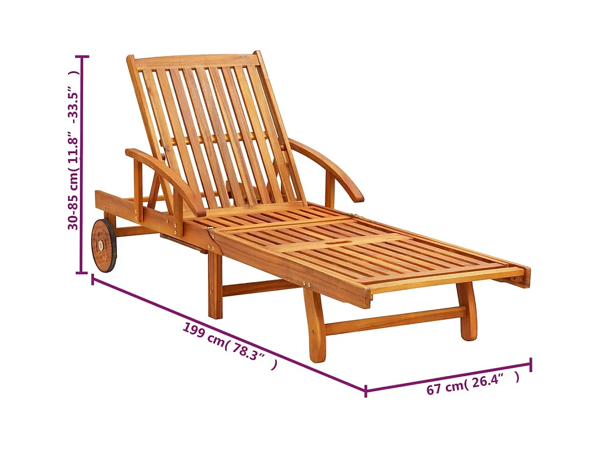 Ligbed met tafeltje en kussen massief acaciahout