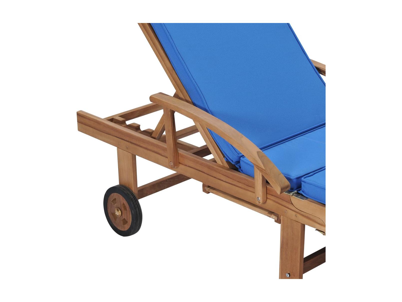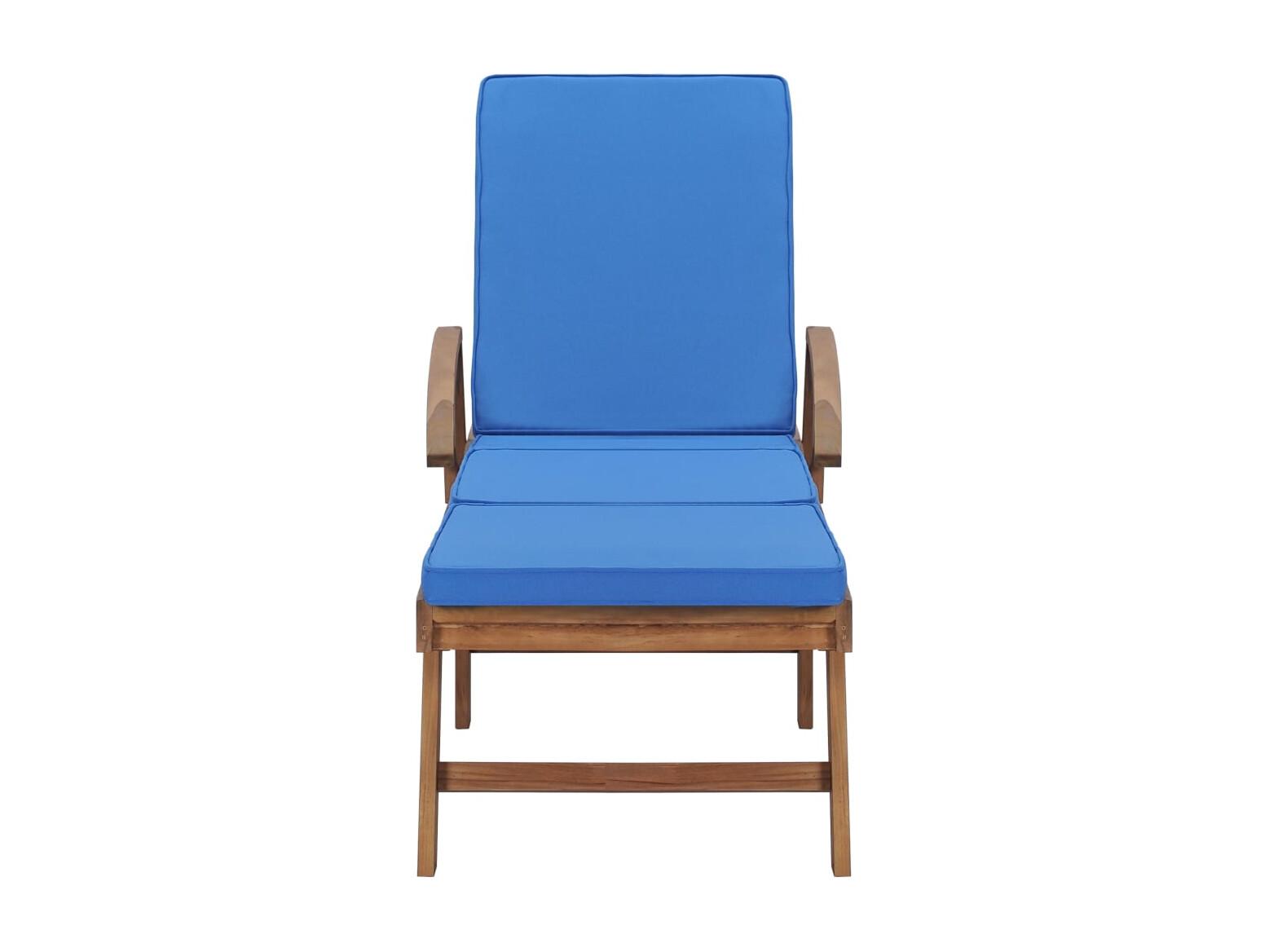 Ligstoelen met kussens 2 stuks massief teakhout blauw