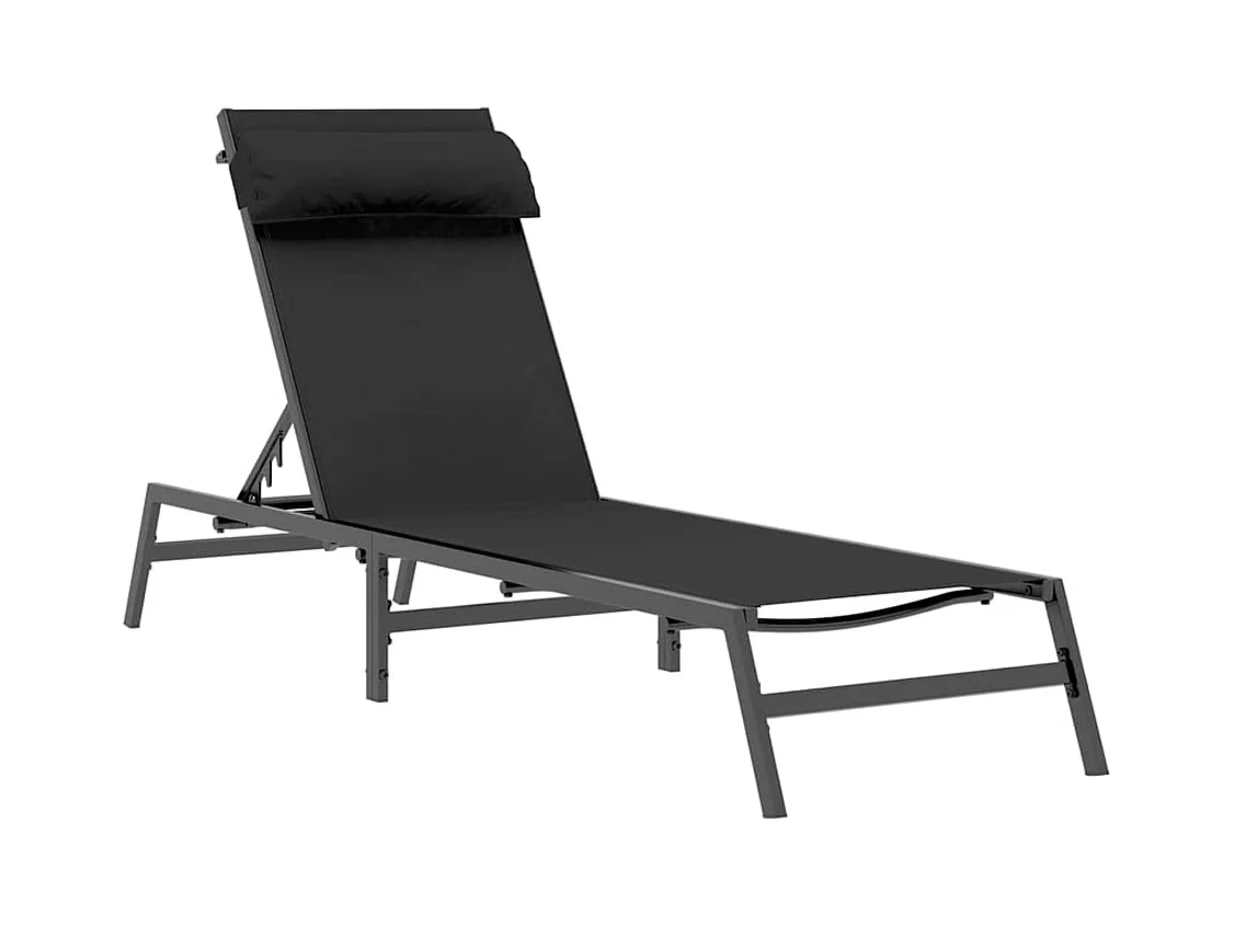 Zwarte chaise longue 197 x 54 x 86 cm Staal en textiel