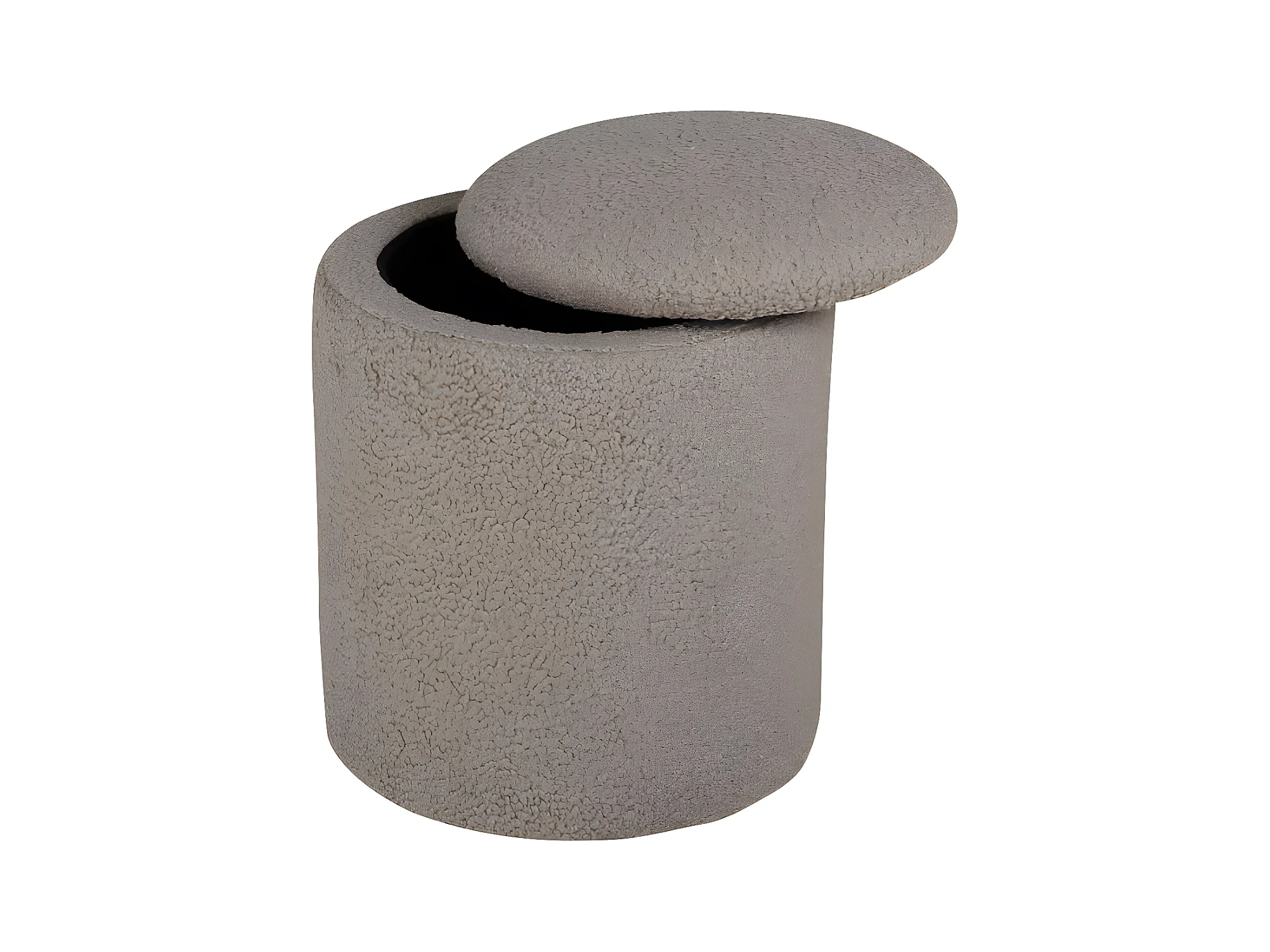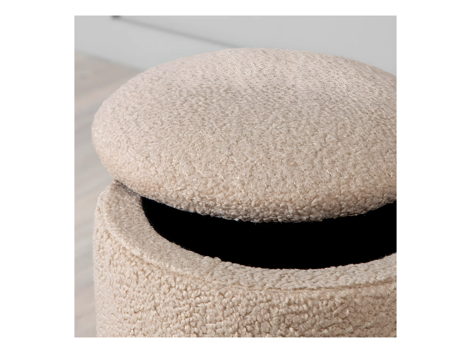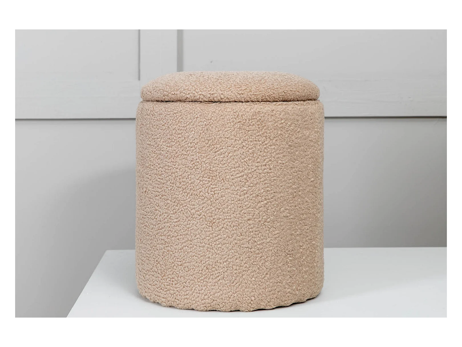 Limpen poef, hocker met opbergruimte Ø32cm teddystof beige.