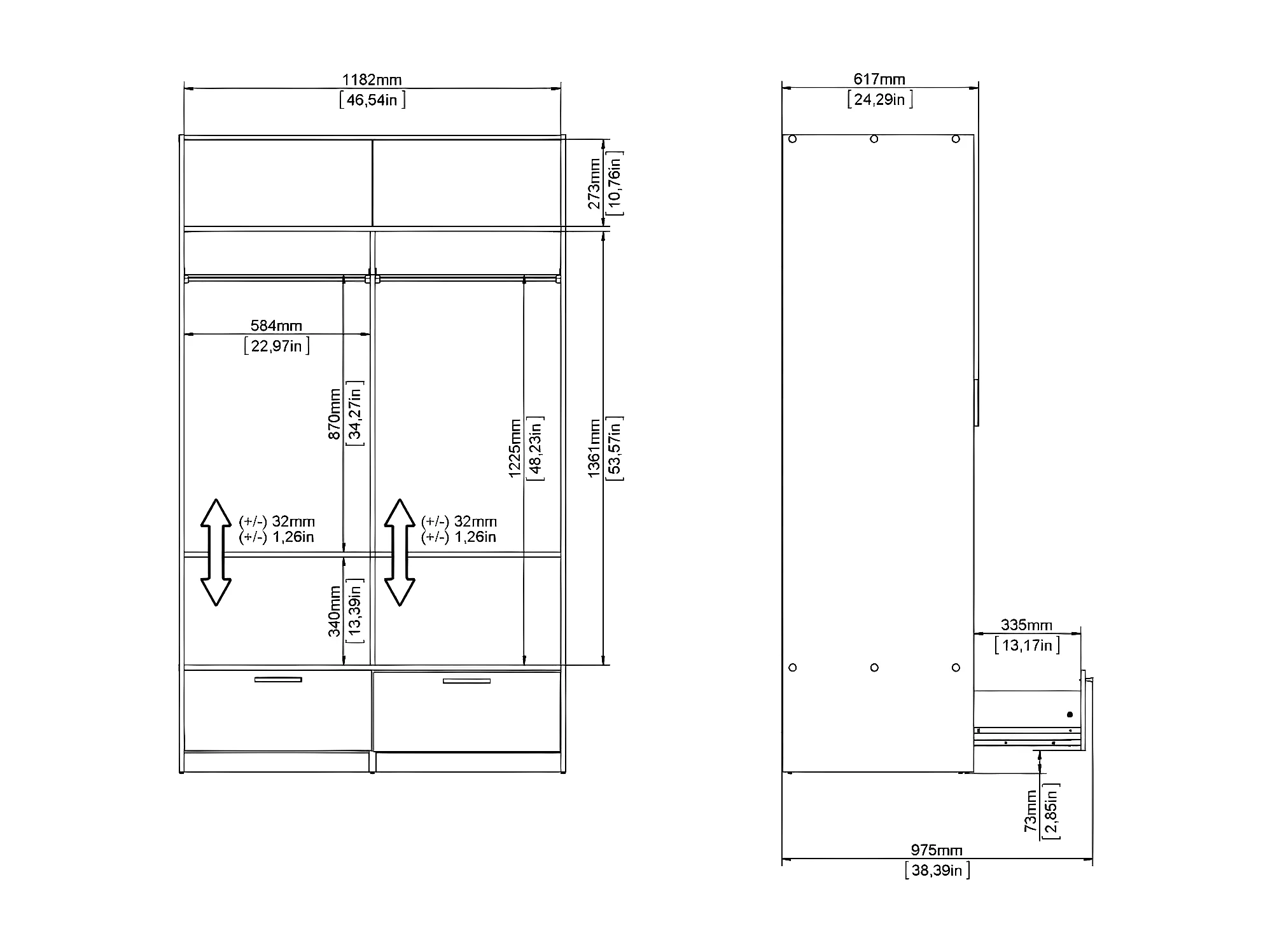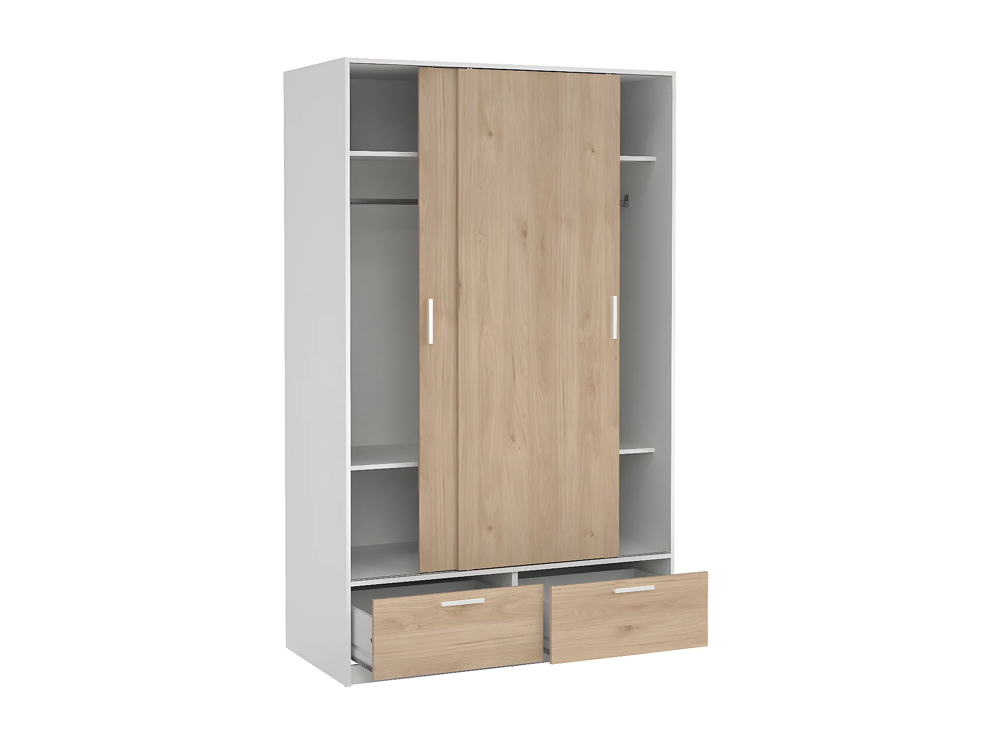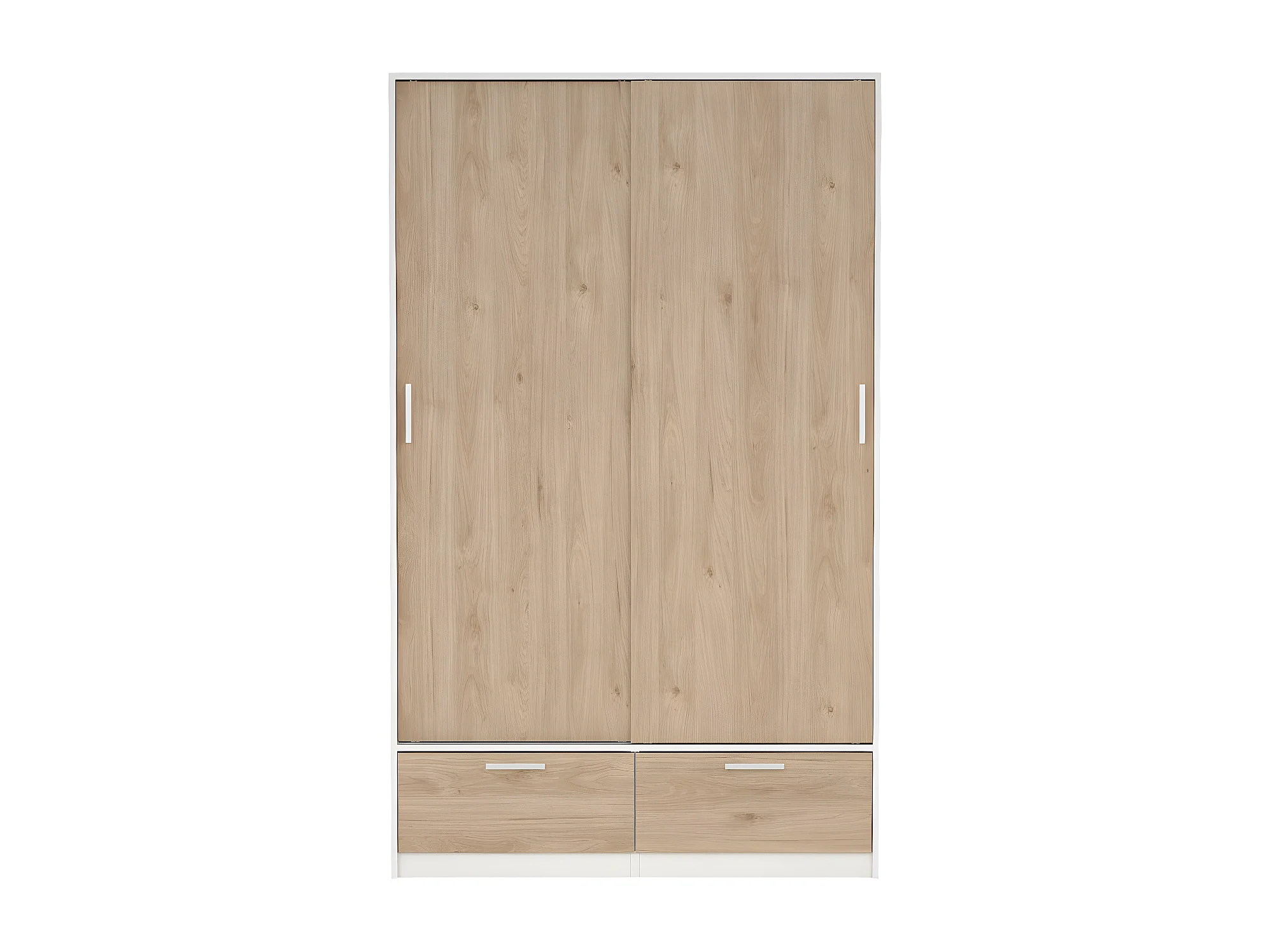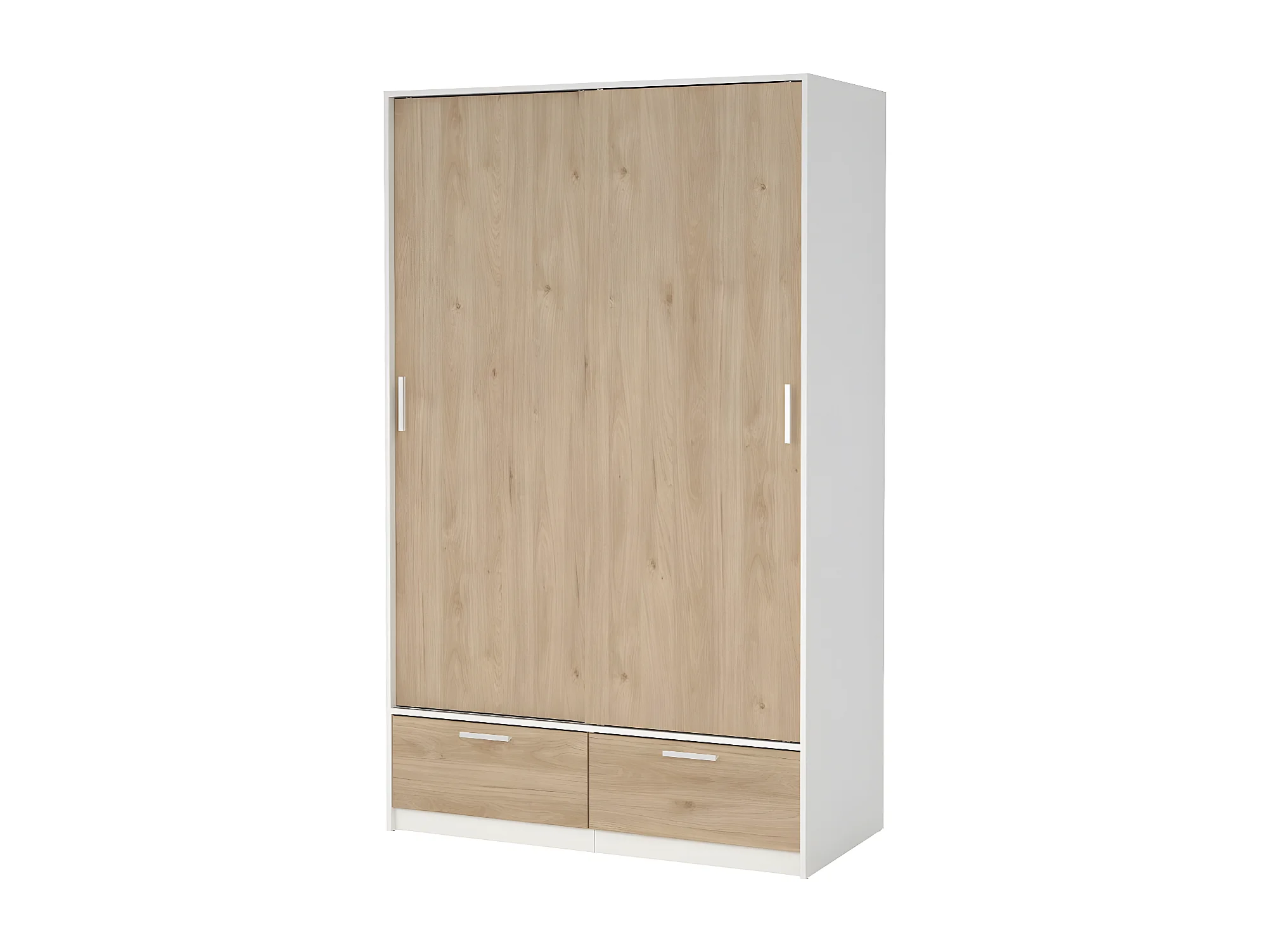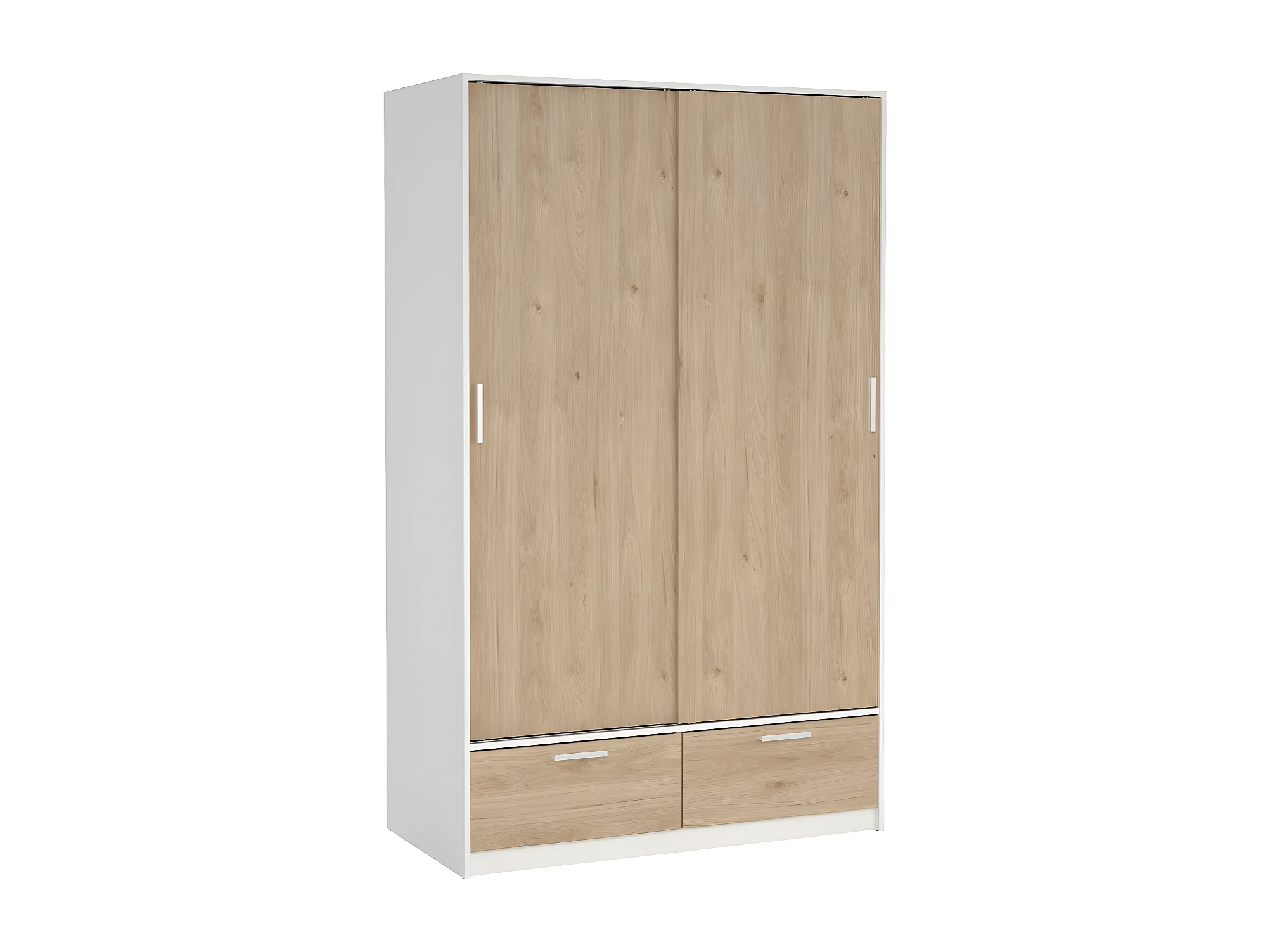 Line kledingkast 2 deuren 2 laden okkernoot decor wit.