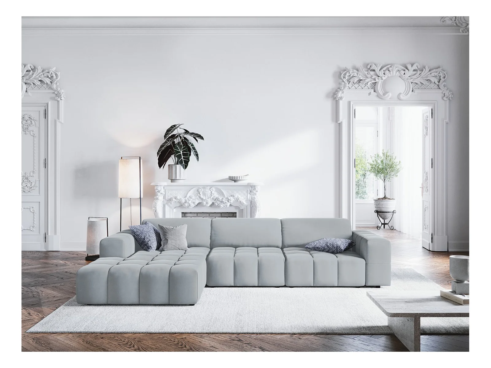 CXL by Christian Lacroix - Linker hoekbank "Luc" 4 zitplaatsen, Flueel, Lichtblauw - 284x166x70cm