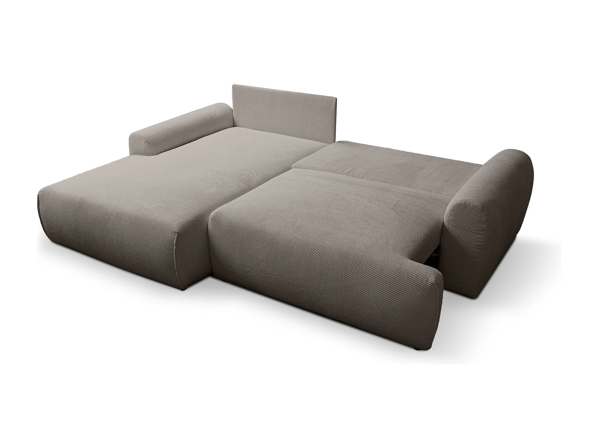 Linker hoekslaapbank Noboo met slaapfunctie en opbergbox in grijs – rechtstreeks van de fabrikant, levering en montage gratis!