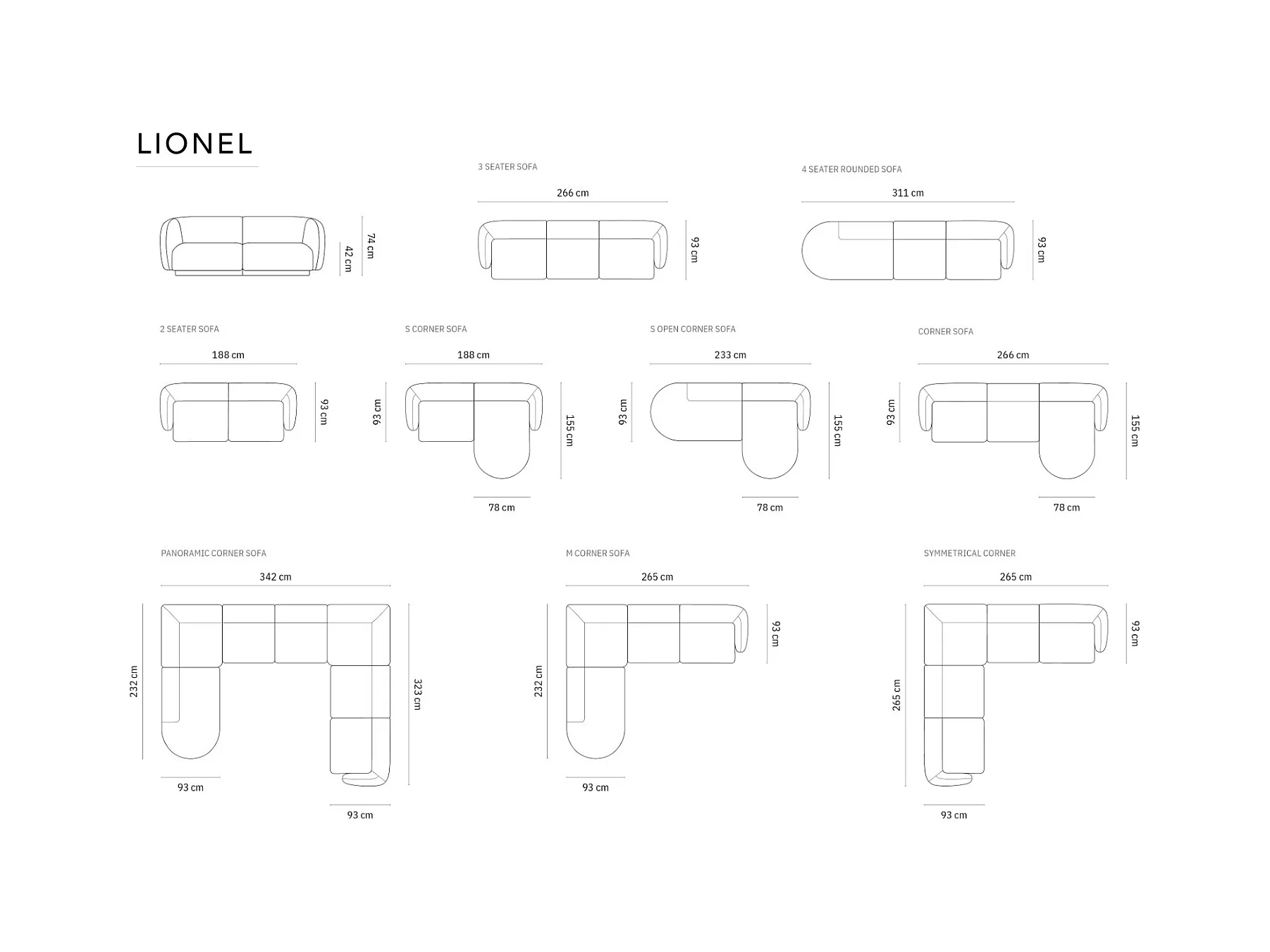 CXL by Christian Lacroix - Linker modulaire bank "Lionel" 4 zitplaatsen, Flueel, Koraal - 311x93x74cm