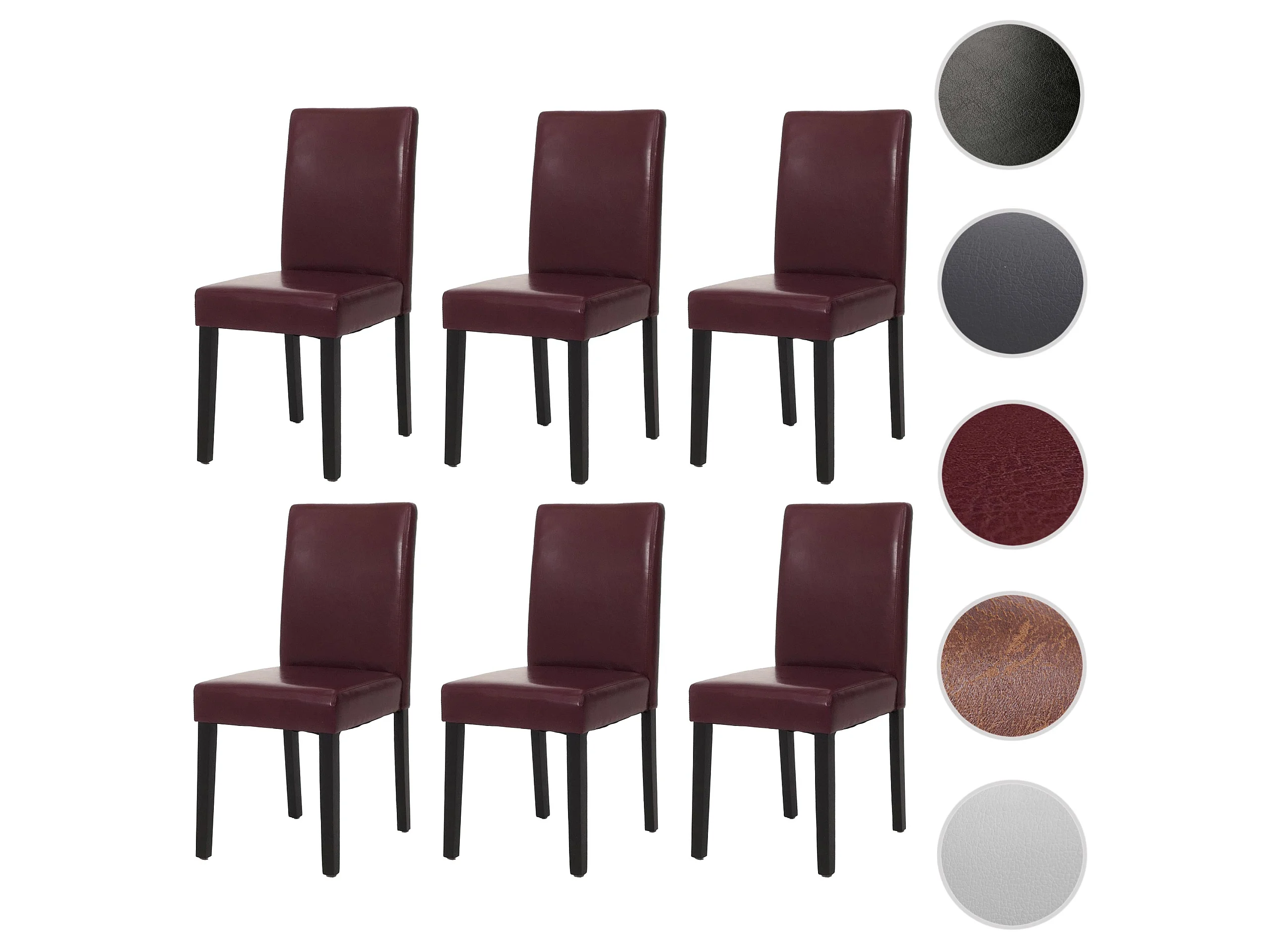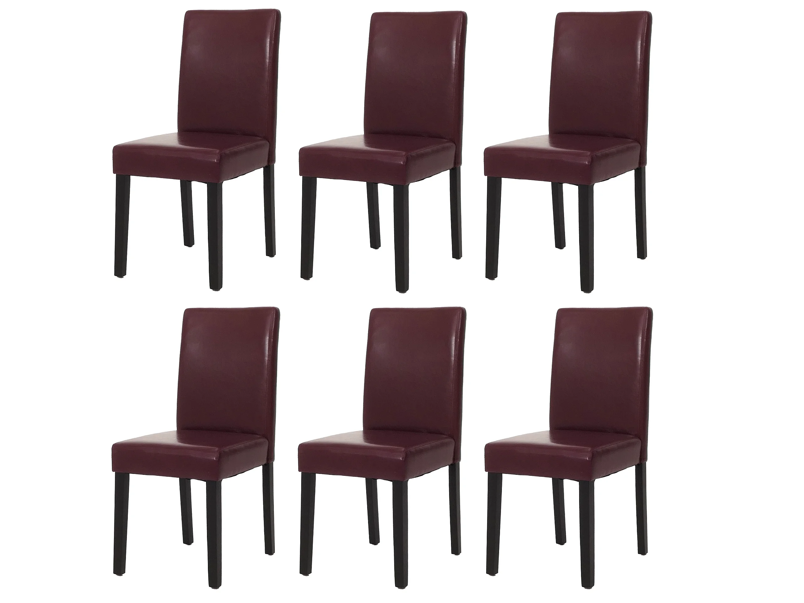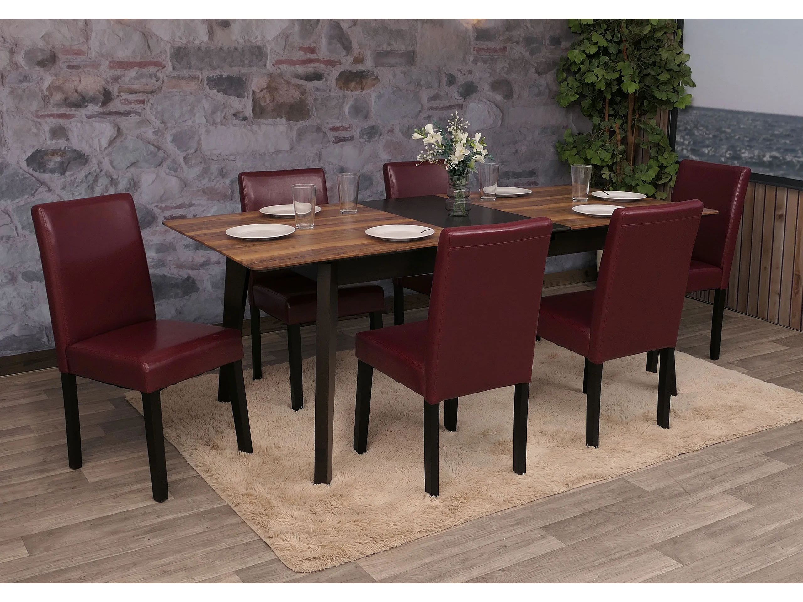 Eetkamerstoel Littau kunstleer 6-delige set, kunstleer, rood, donkere poten