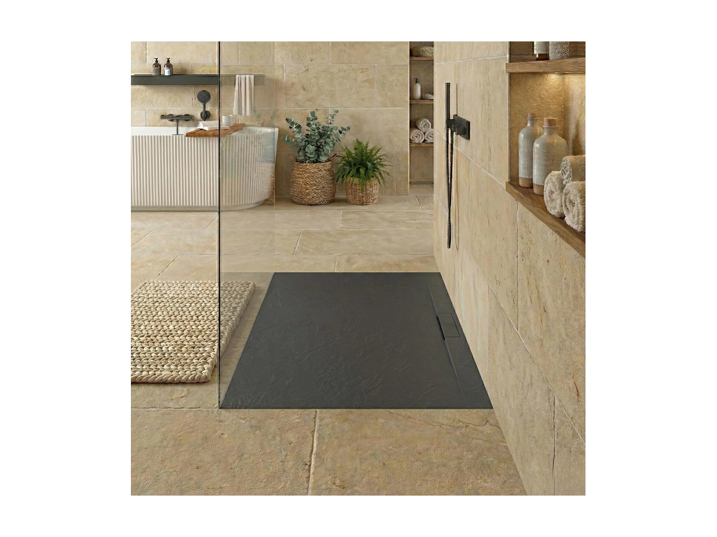 LIVA extra vlakke wanddouchebak in leisteenlook 140x90