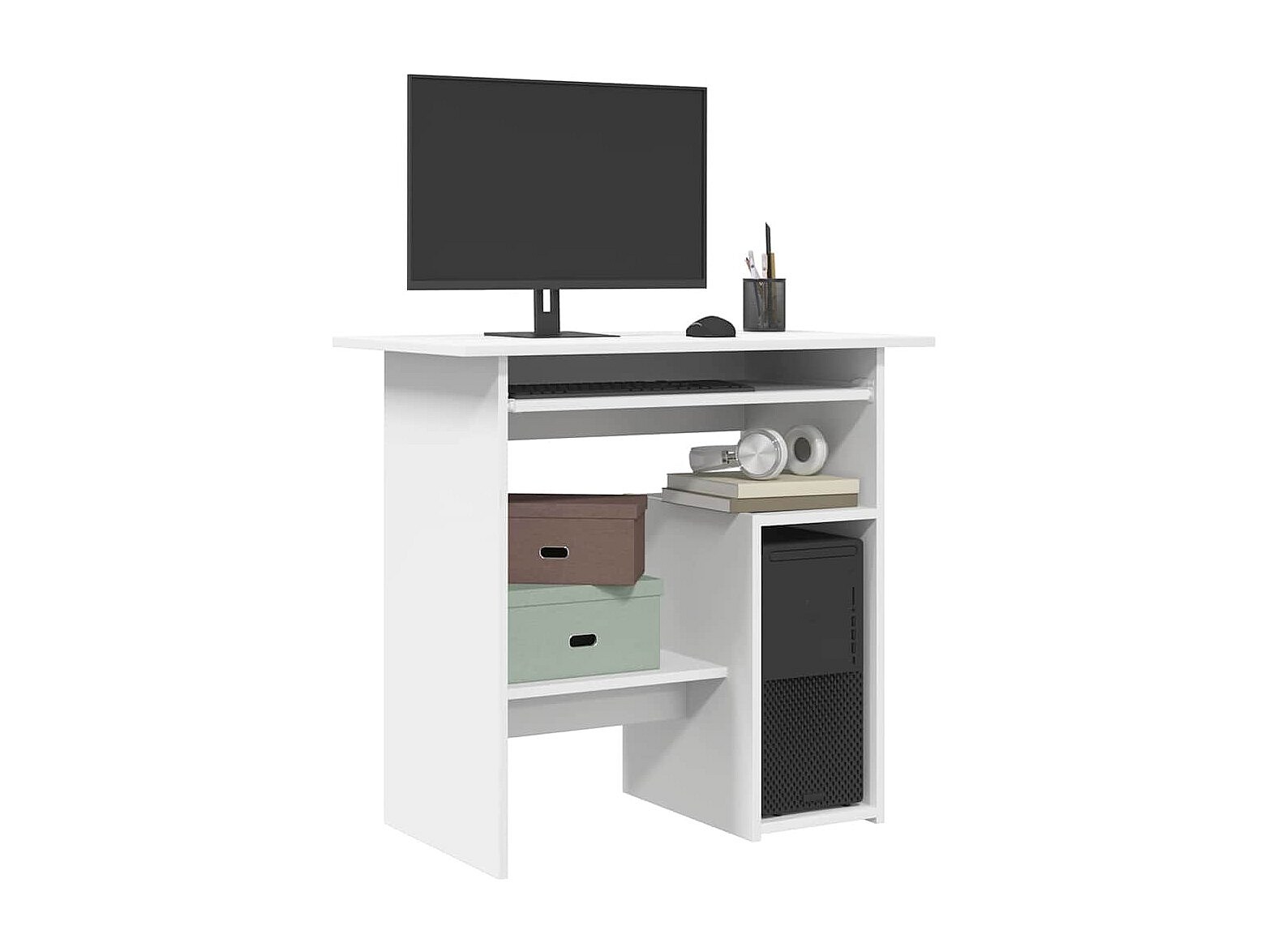Dit computerbureau is gemaakt van hoogwaardig bewerkt hout waardoor het stevig en duurzaam is. Ons bureau is perfect voor kleinere kantoren, slaapzalen en kleine ruimtes, maar ook als je gewoon de ruimte die je hebt wilt maximaliseren. Het open schap aan de rechterkant biedt voldoende ruimte om je pc neer te zetten. Daarnaast is er voldoende ruimte voor verschillende mappen onder de eenvoudig te gebruiken toetsenbordlade.