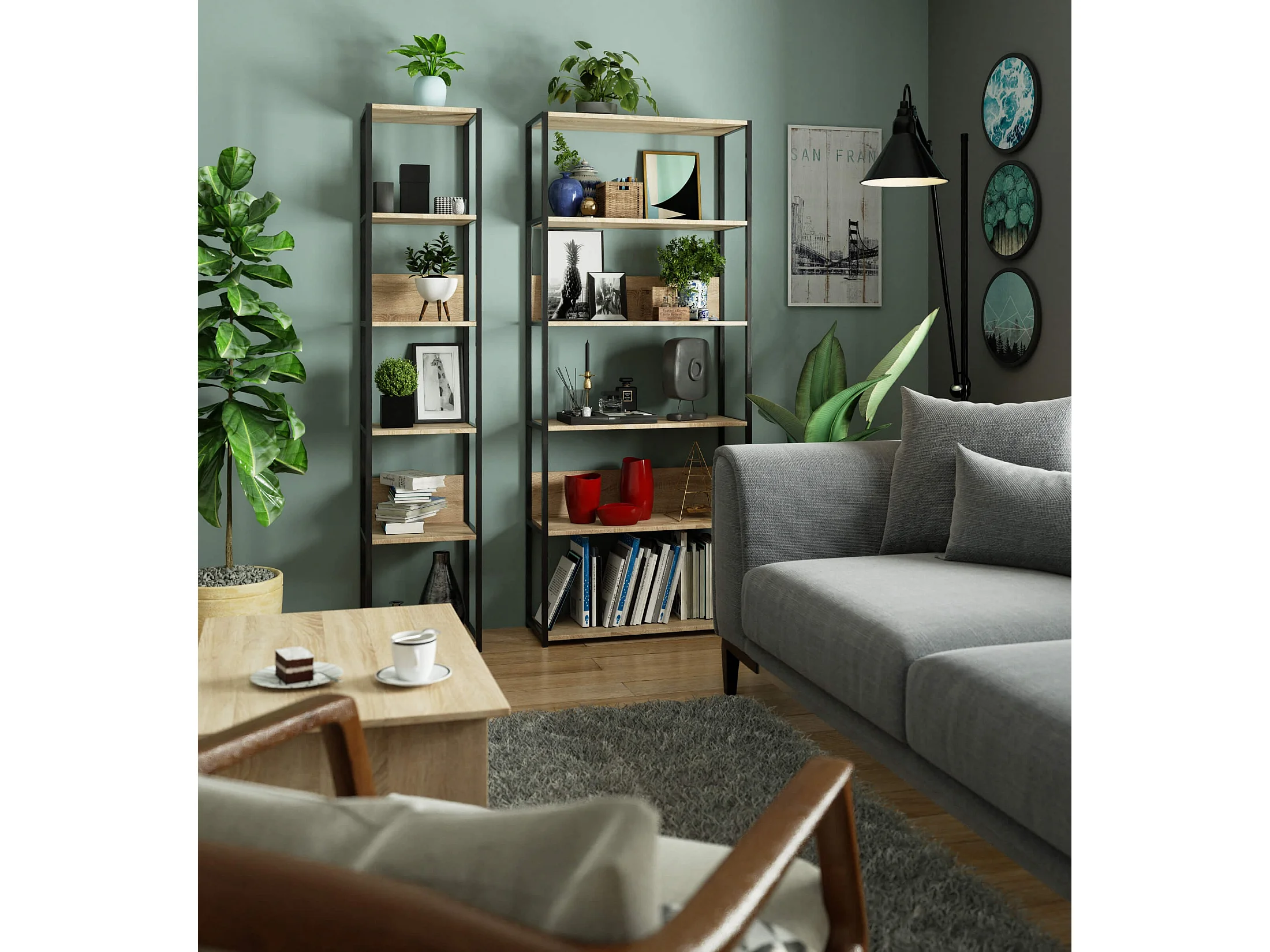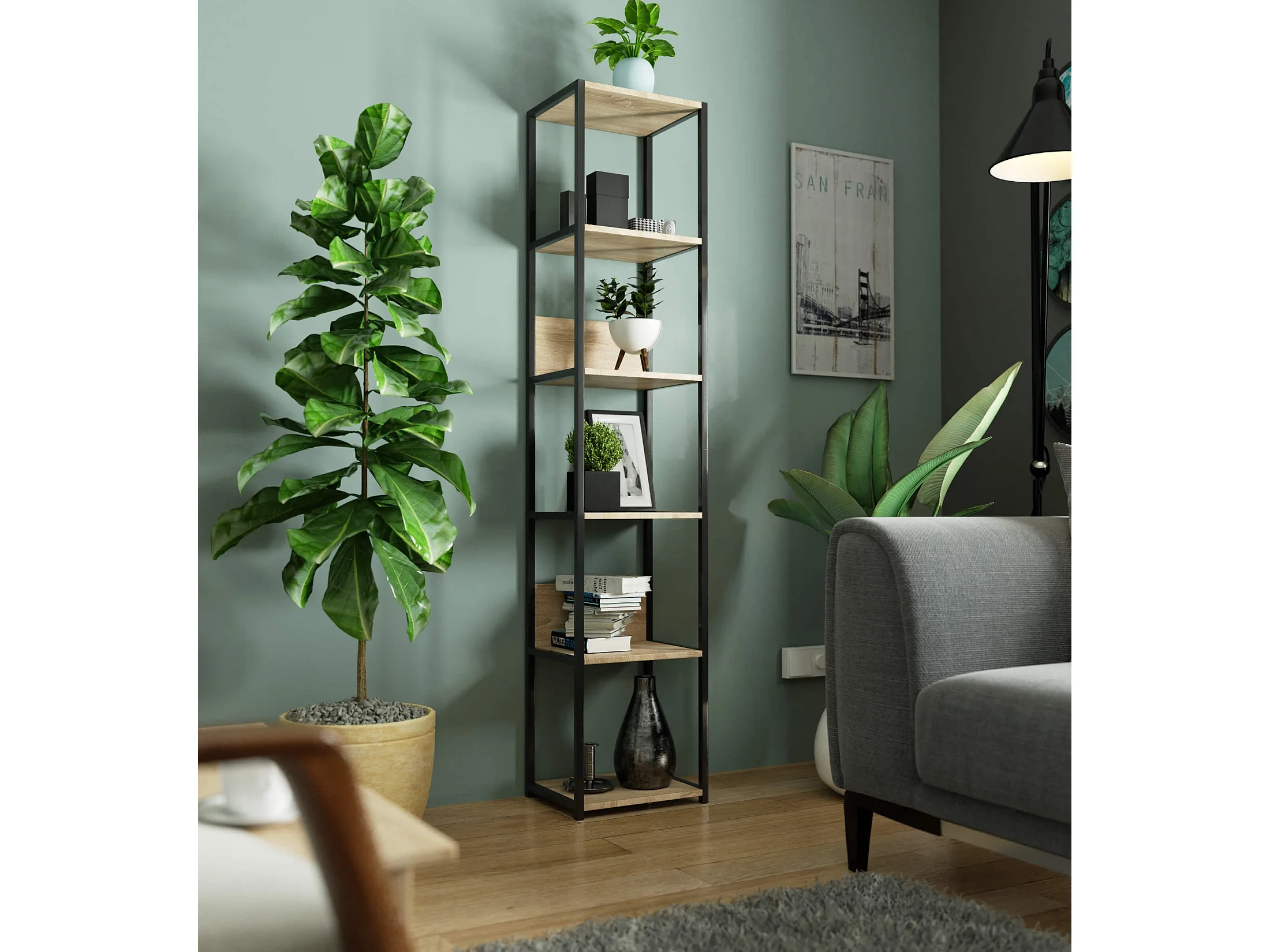 Open Boekenkast, Ladderkast, Loft Design / Metalen Vakkenkast met 6 Planken / Opbergplank / Boekenrek Opslagrek / Zwart - Sonoma Eik / 40 x 192 x 32 cm