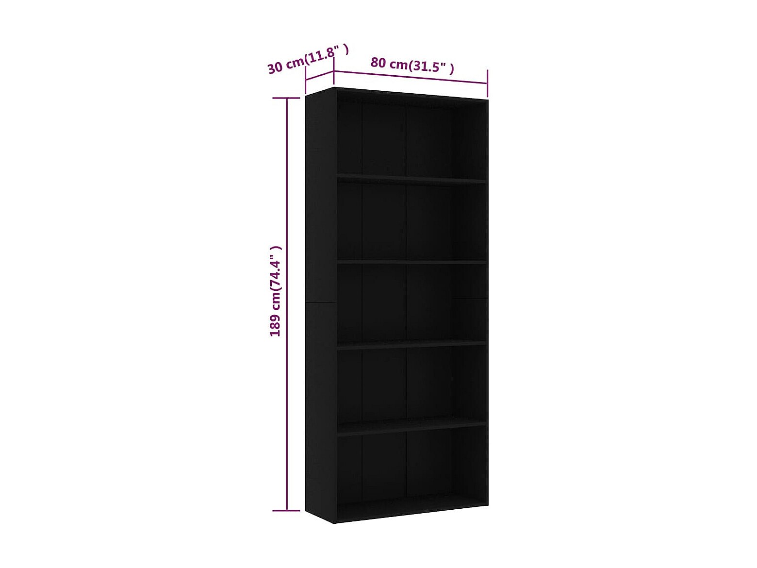 Loïc Boekenkast met 5 schappen 80x30x189 cm bewerkt hout zwart
