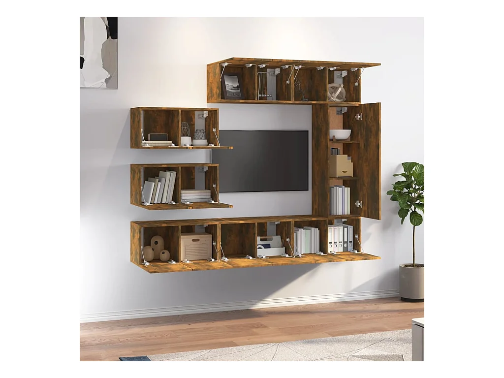 Lois 8-delige Tv-meubelset bewerkt hout gerookt eikenkleurig