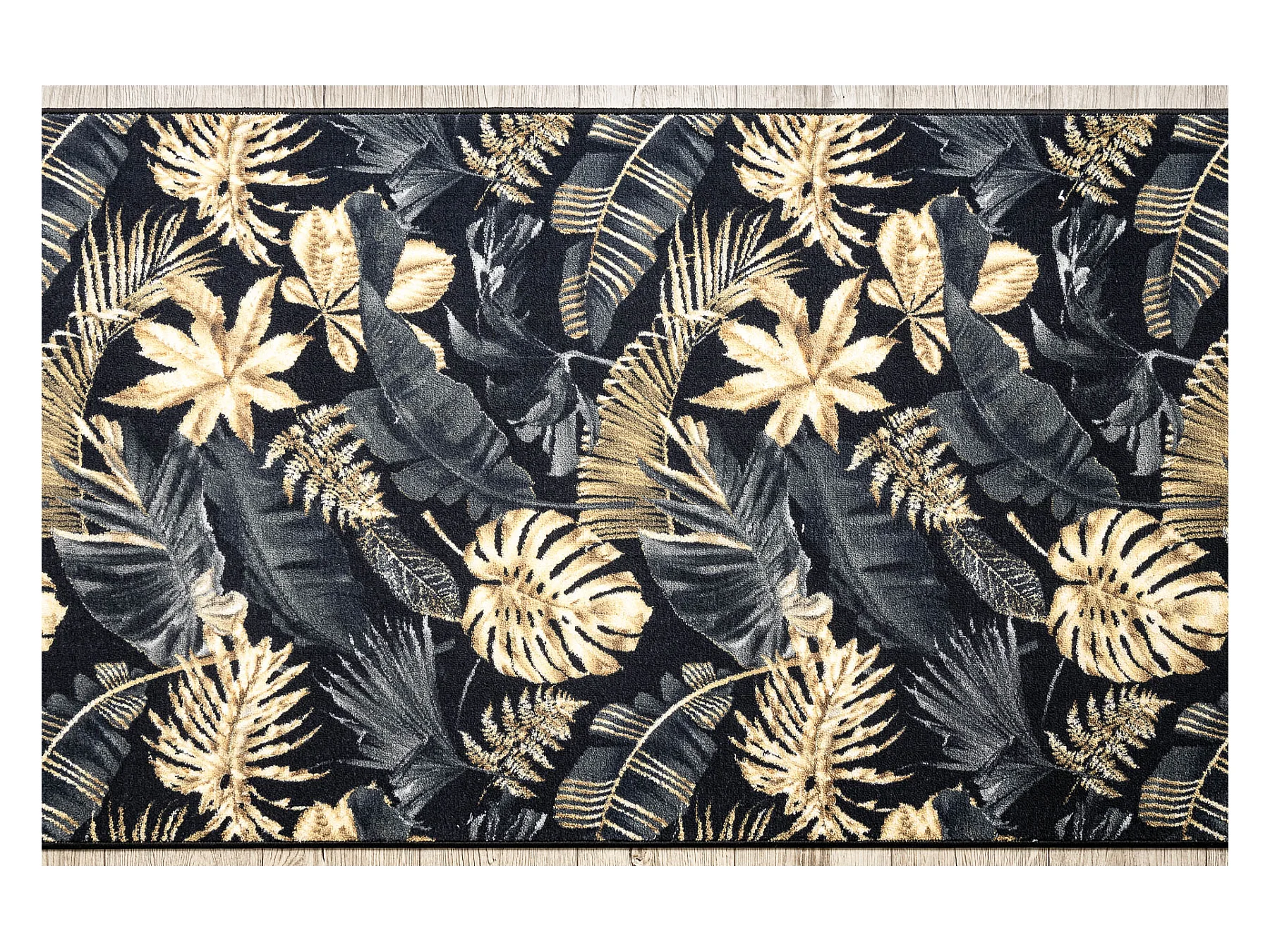 Loper antislip MONSTERA Bladeren, gom goud 80x760 cm