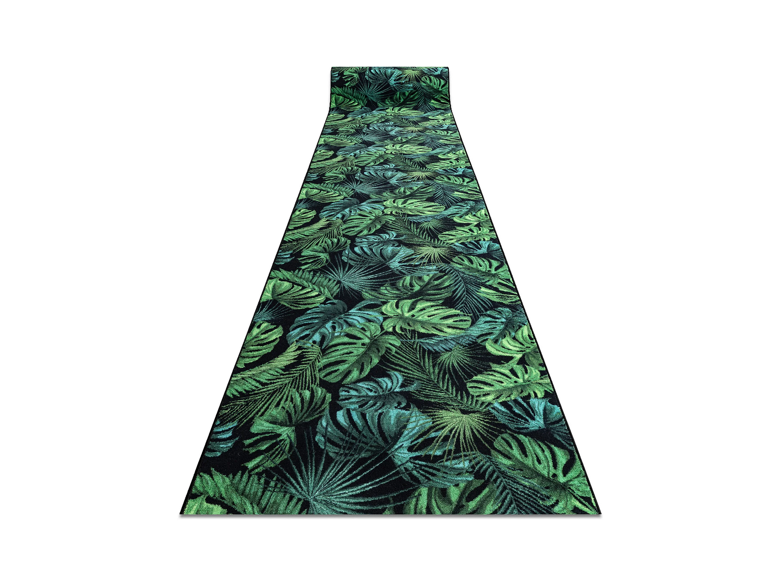 Loper antislip MONSTERA Bladeren, gom groen 67x1200 cm
