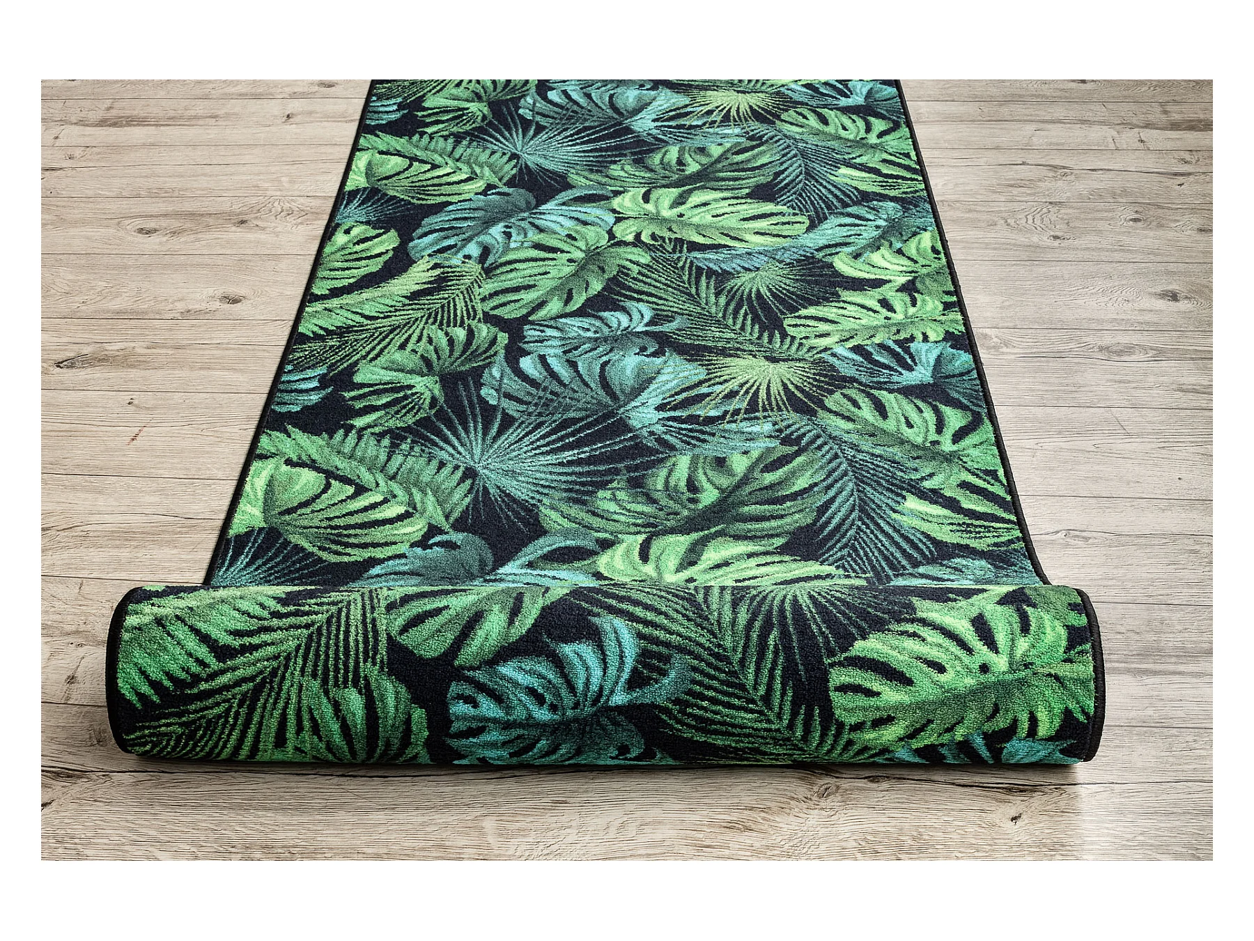 Loper antislip MONSTERA Bladeren, gom groen 80x170 cm
