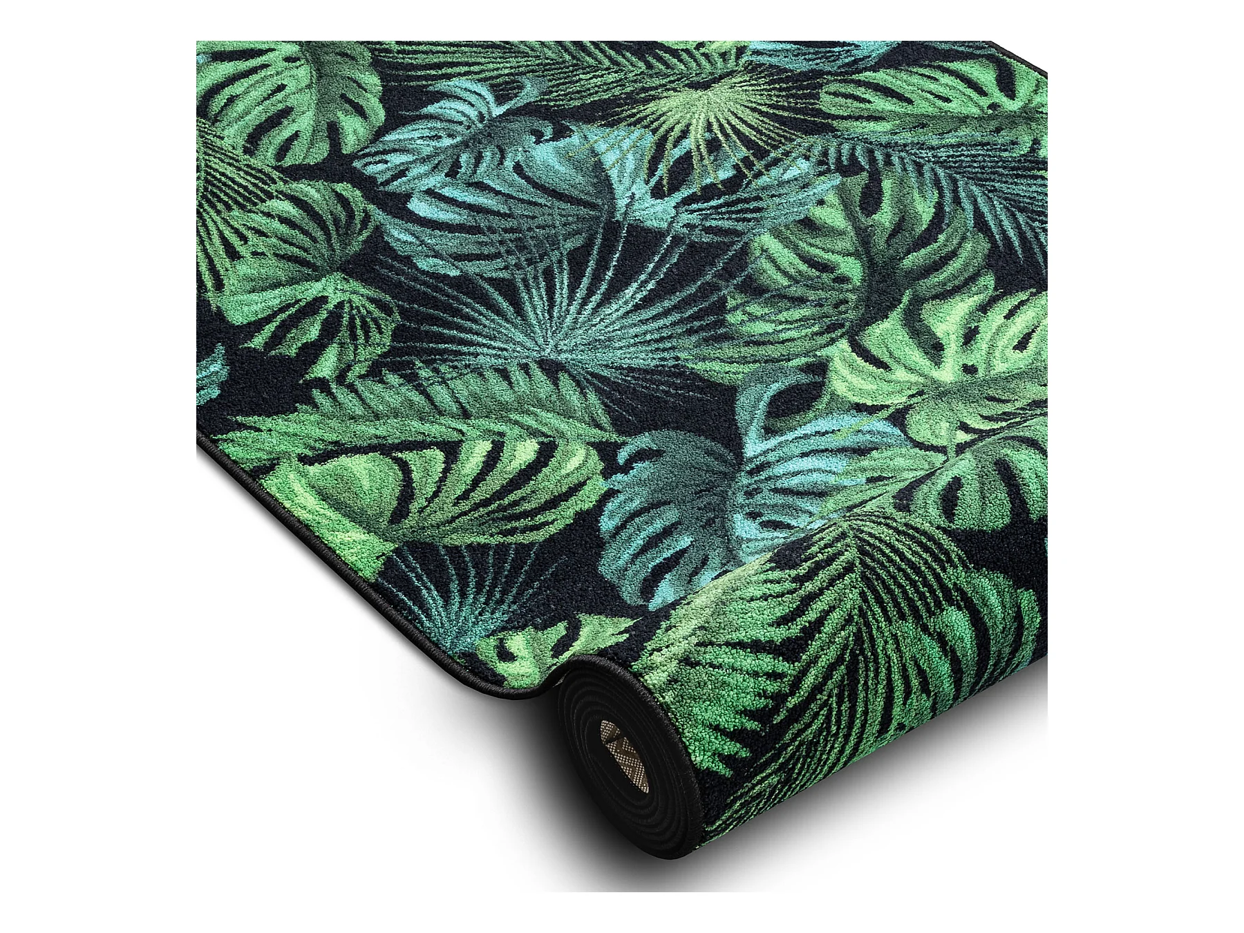 Loper antislip MONSTERA Bladeren, gom groen 80x460 cm