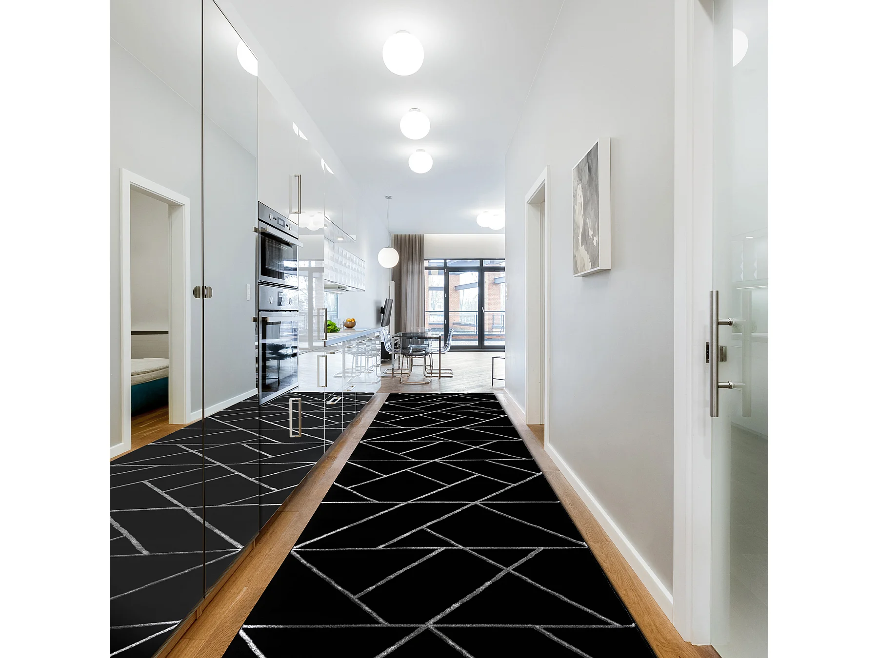 Loper EMERALD exclusief 7543 glamour, stijlvol geometrisch zwart / zil 80x1050 cm