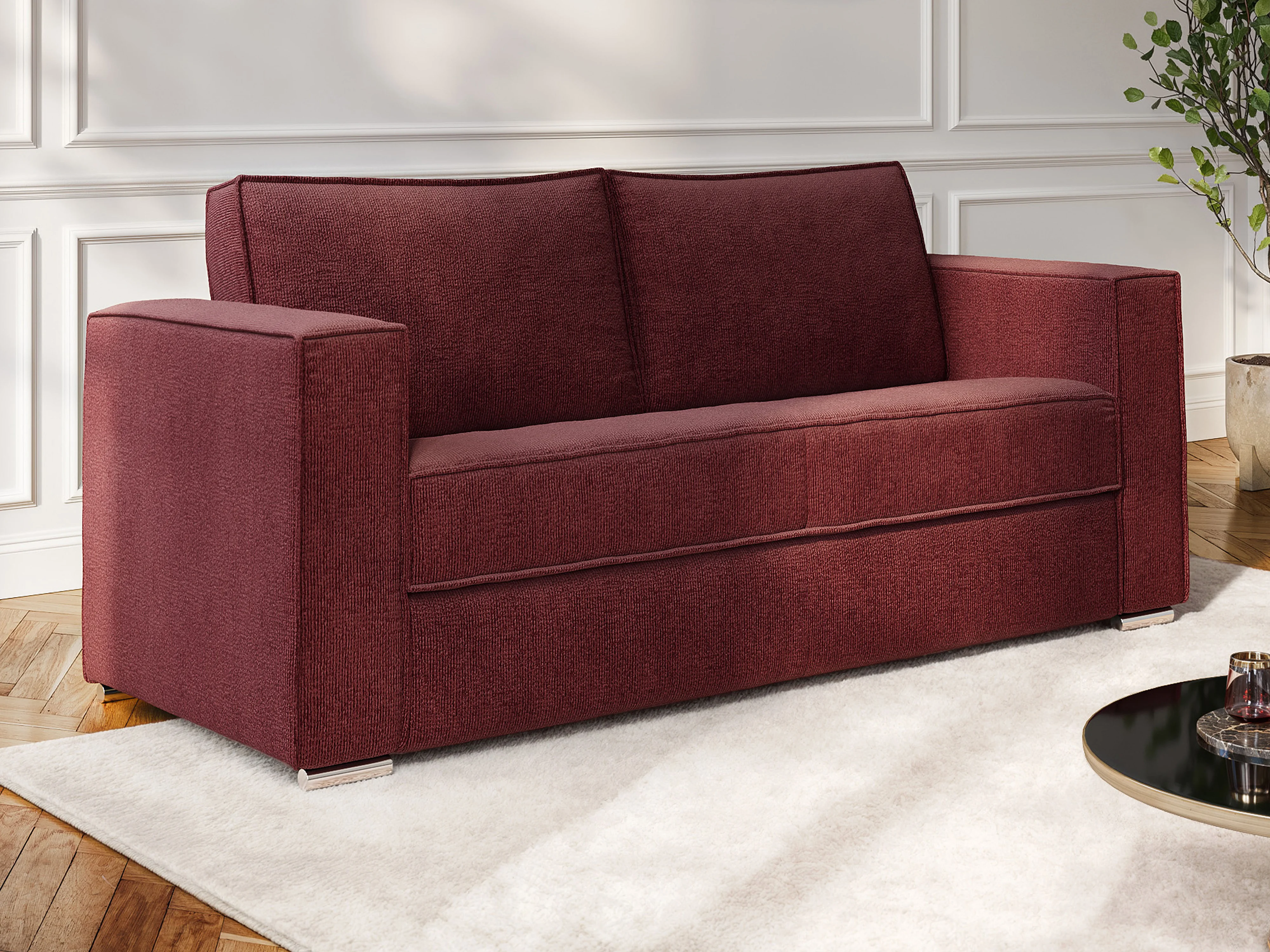 Express-vierzitsslaapbank in bordeauxrode chenille stof - Slaapoppervlak met brede latten 160 cm - Matras 22 cm met traagschuim LORETO