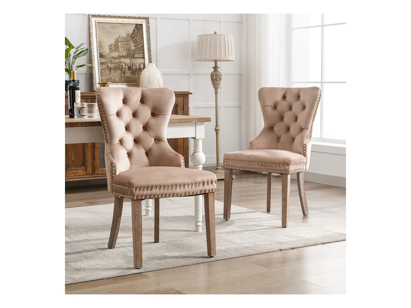 Set van 2 eetkamer-, keuken- en woonkamerstoelen Gestoffeerde stoel Massief houten poten - 53,5x64x95cm Bruin