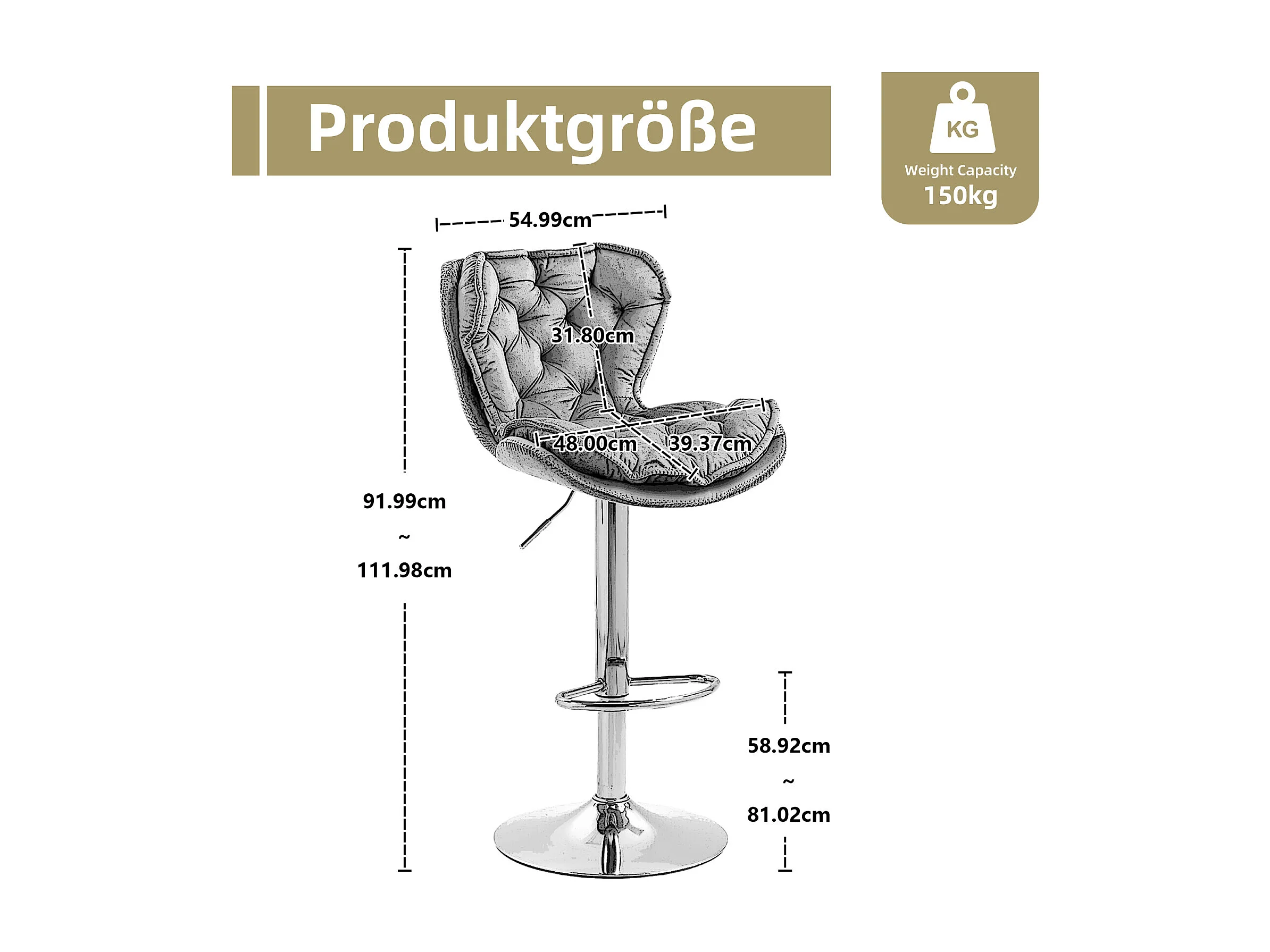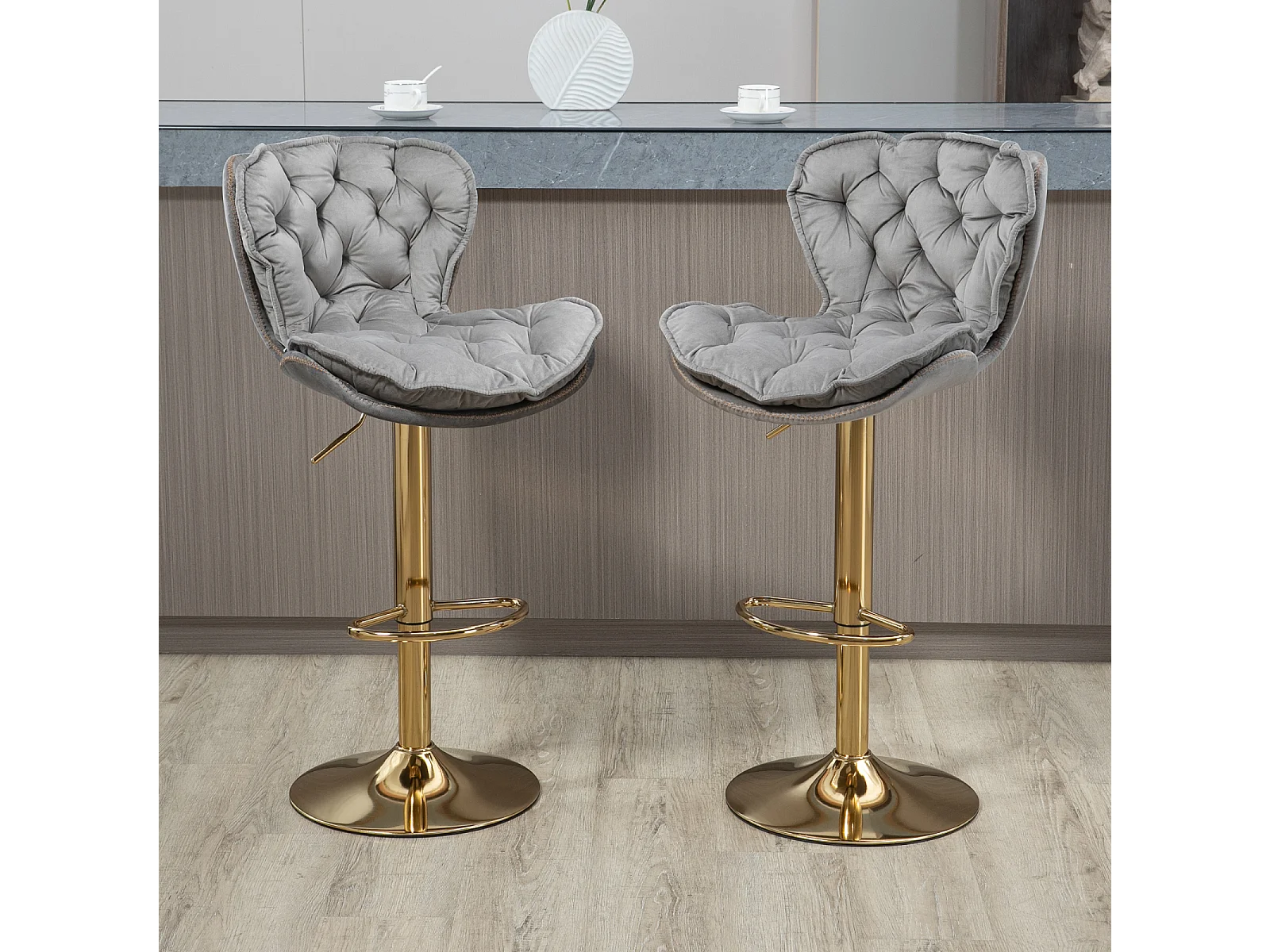 Set van 2 draaibare barkrukken 55x46x92-112cm, verstelbare barkrukken met voetenbank voor keuken eetkamer unieke stijl, grijs