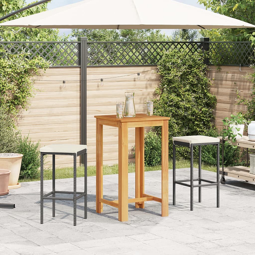 Louis-Marius 3-delige Tuinbarset massief acaciahout en poly rattan zwart