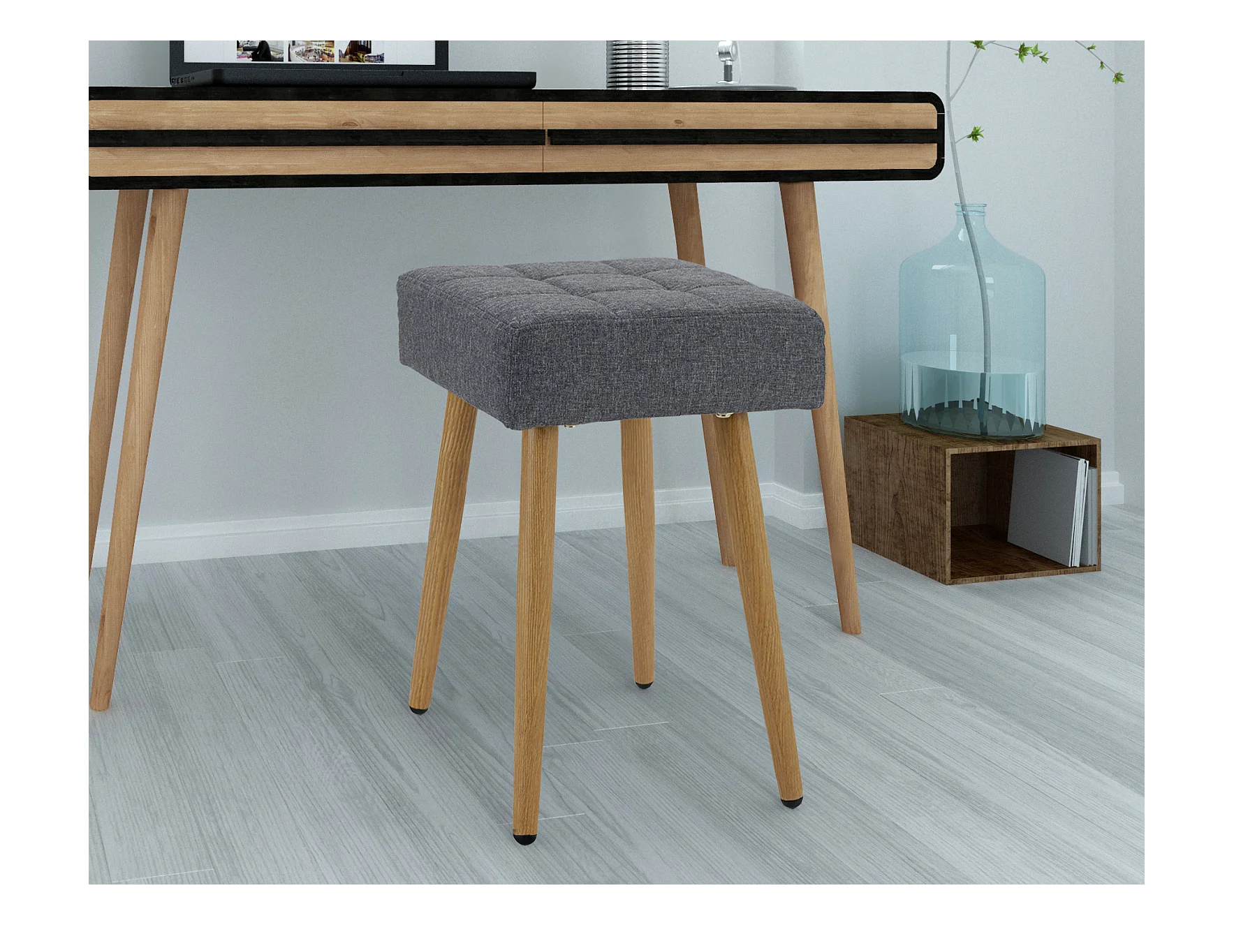 LOUISE-Kruk in stof antraciet en poten in metaal eik