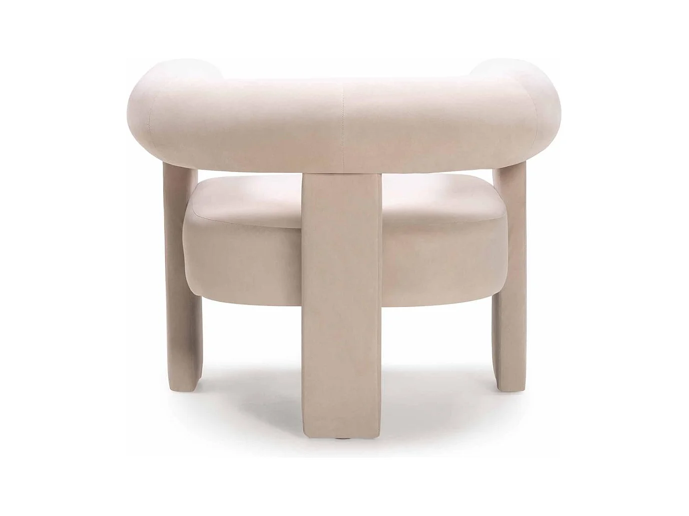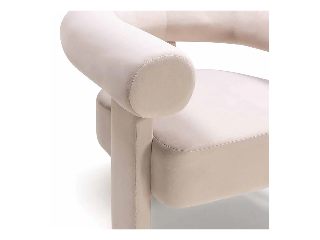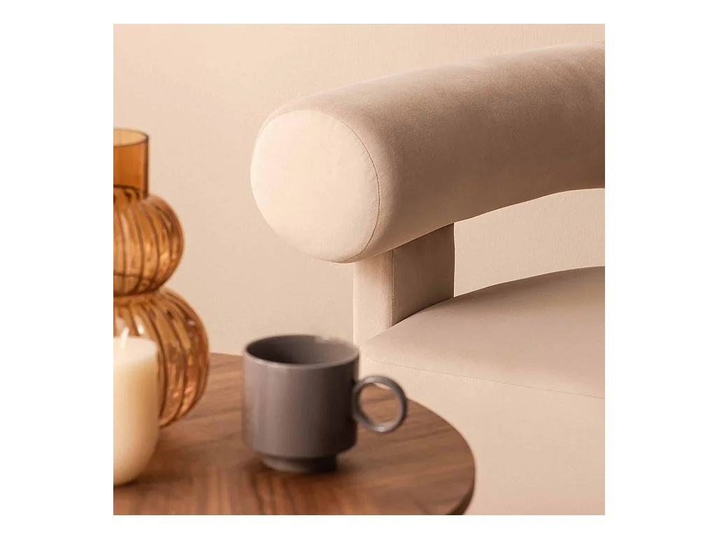 Salonfauteuil in beige fluweel met houten poten uit de ENJOY-collectie. Scandinavische stijl.