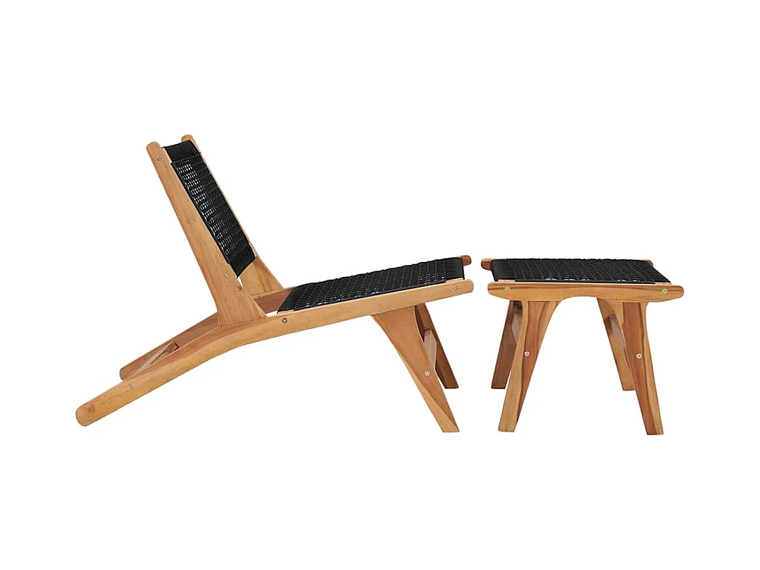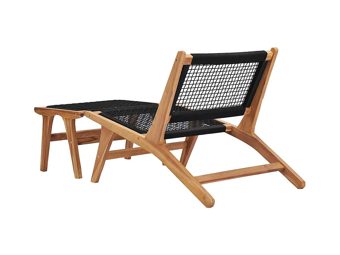 Lounge stoel met voetenbankje Massief teakhout en touw