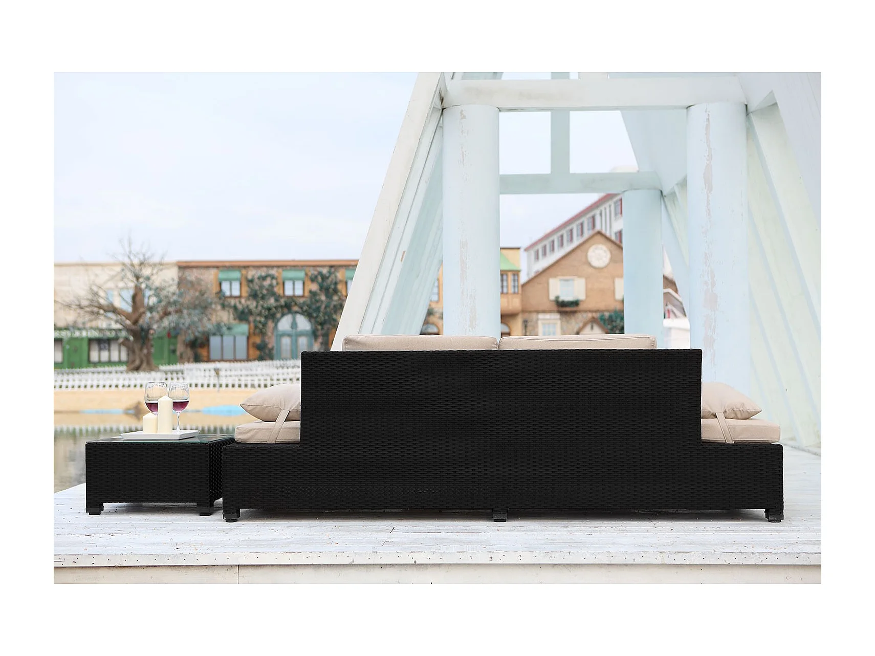 Loungeset 2-Zits Tuinset van Zwart/Beige Vlechtwerk CORFOU - Comfortabel en Modulair
