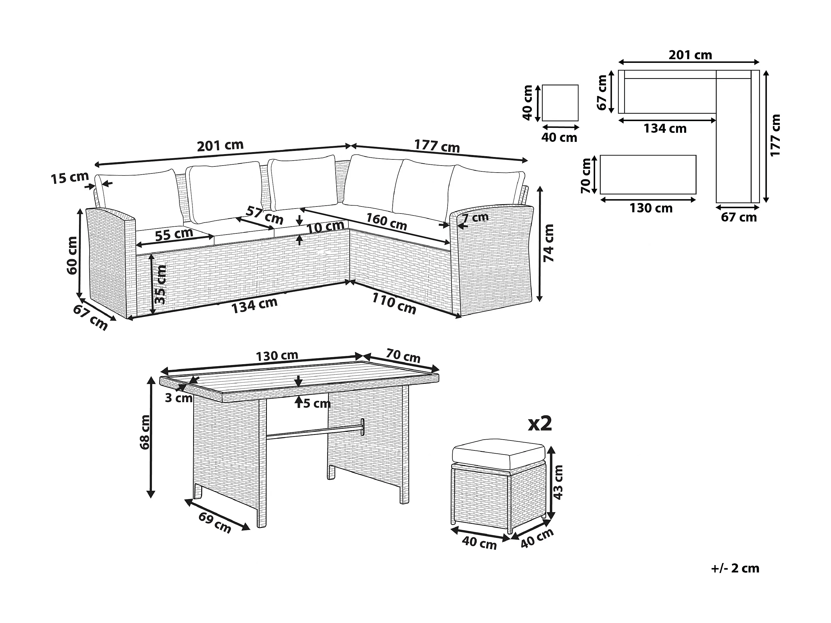 Loungeset met tafel en ottomaan 5-zitter BARDI met kussens Bruin