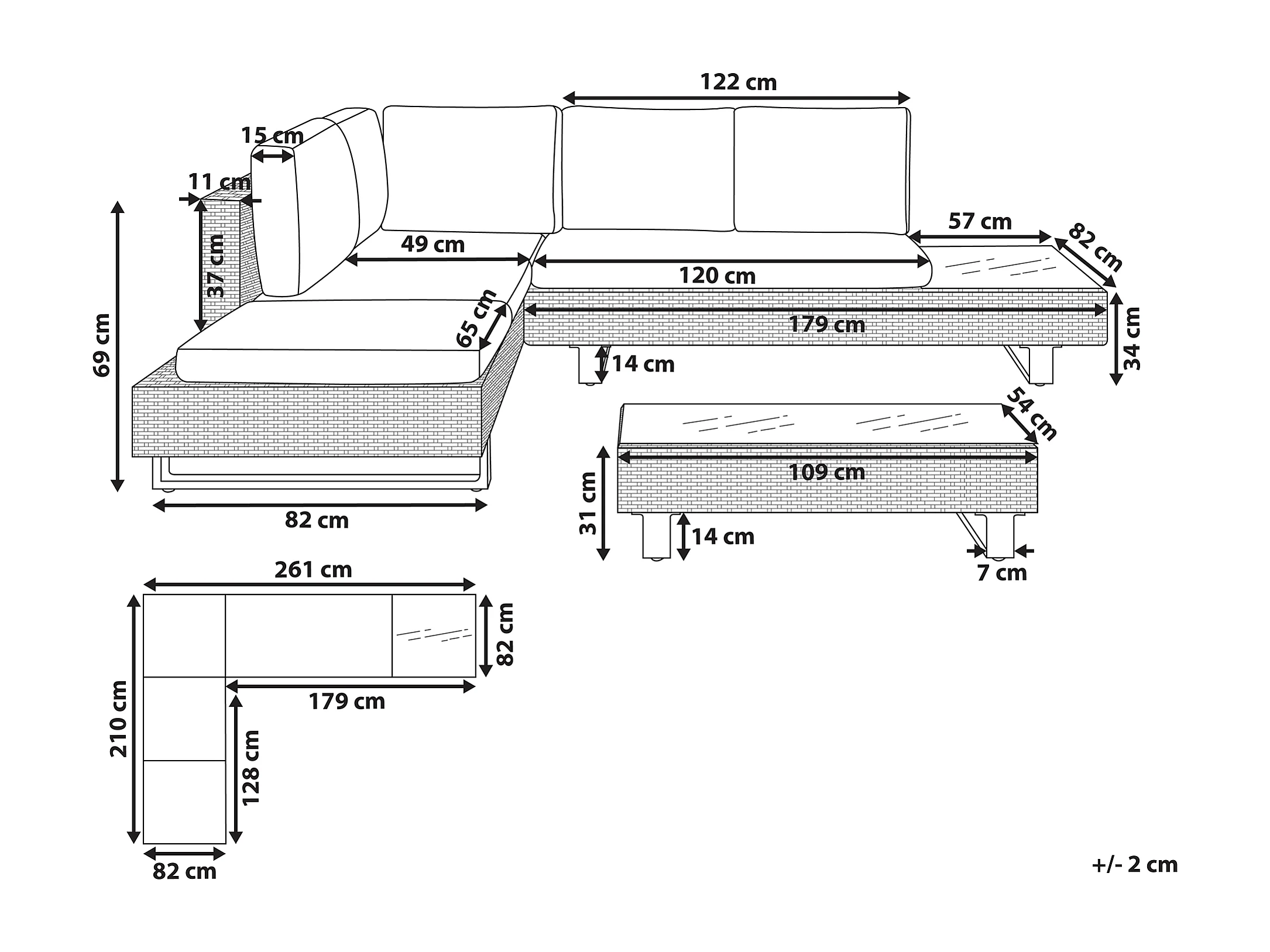 Tuin hoekloungeset met tafel 5-zitter LANCIANO Rechterzijde Grijs