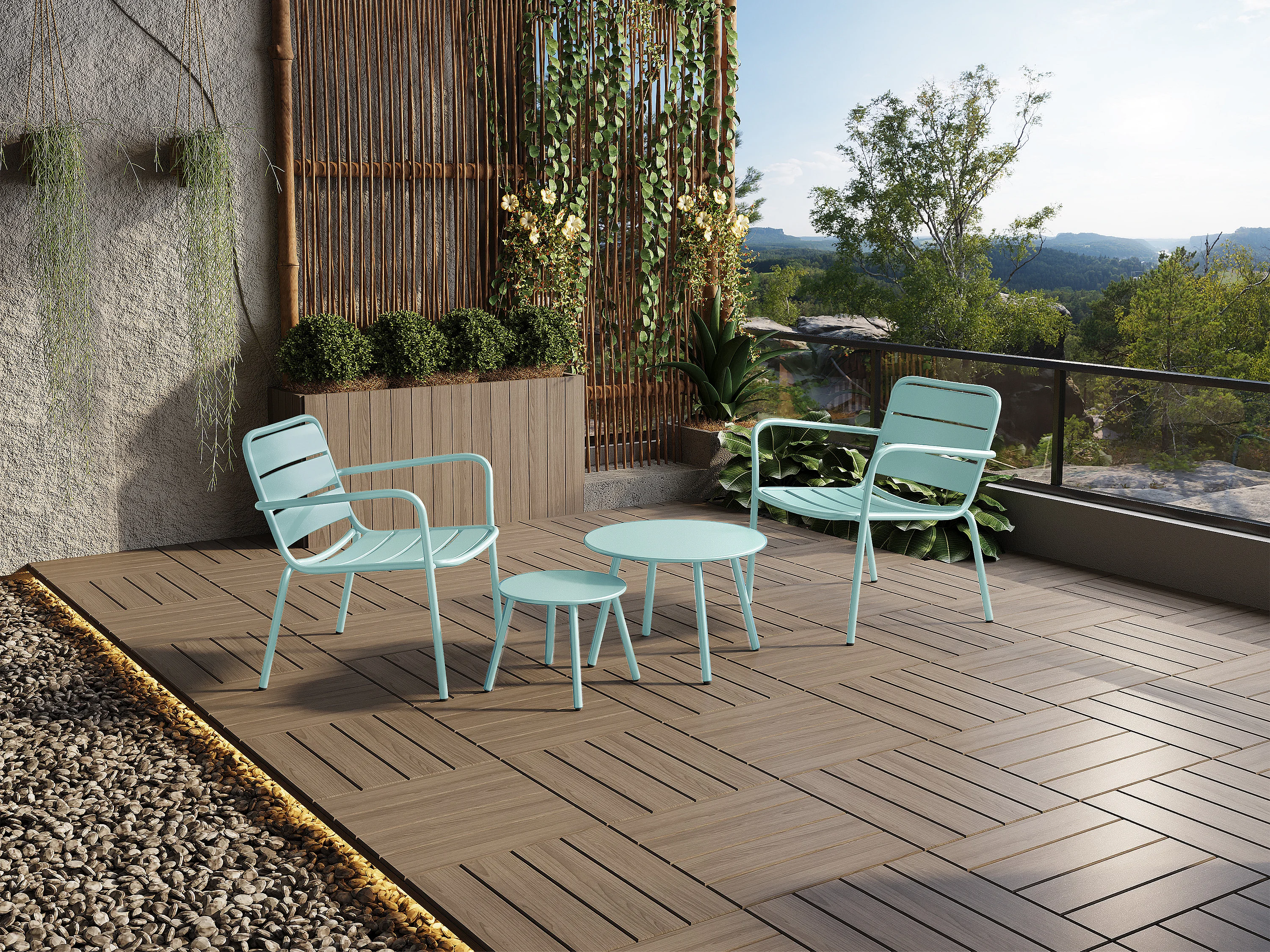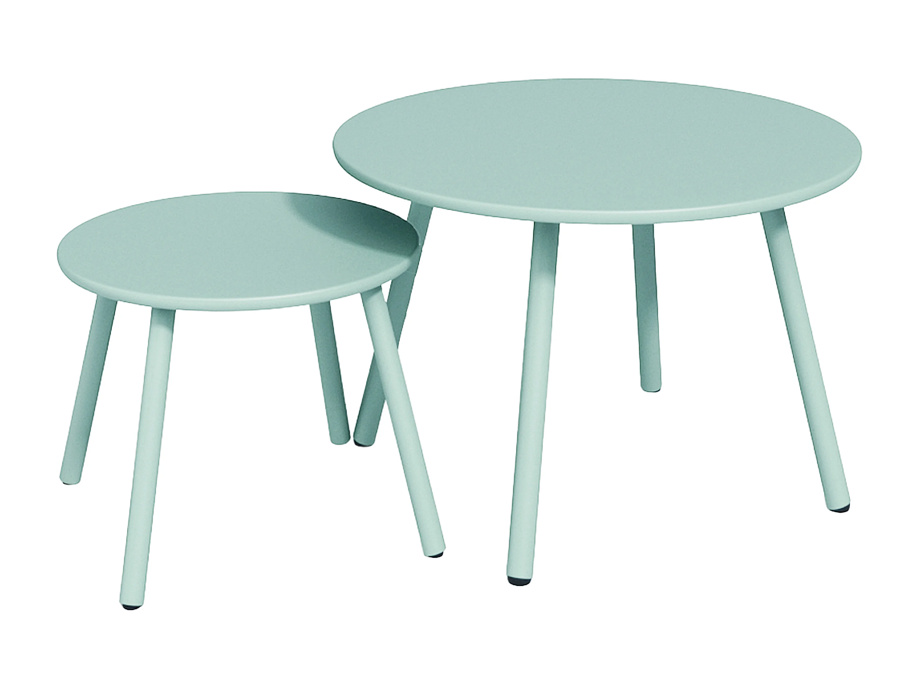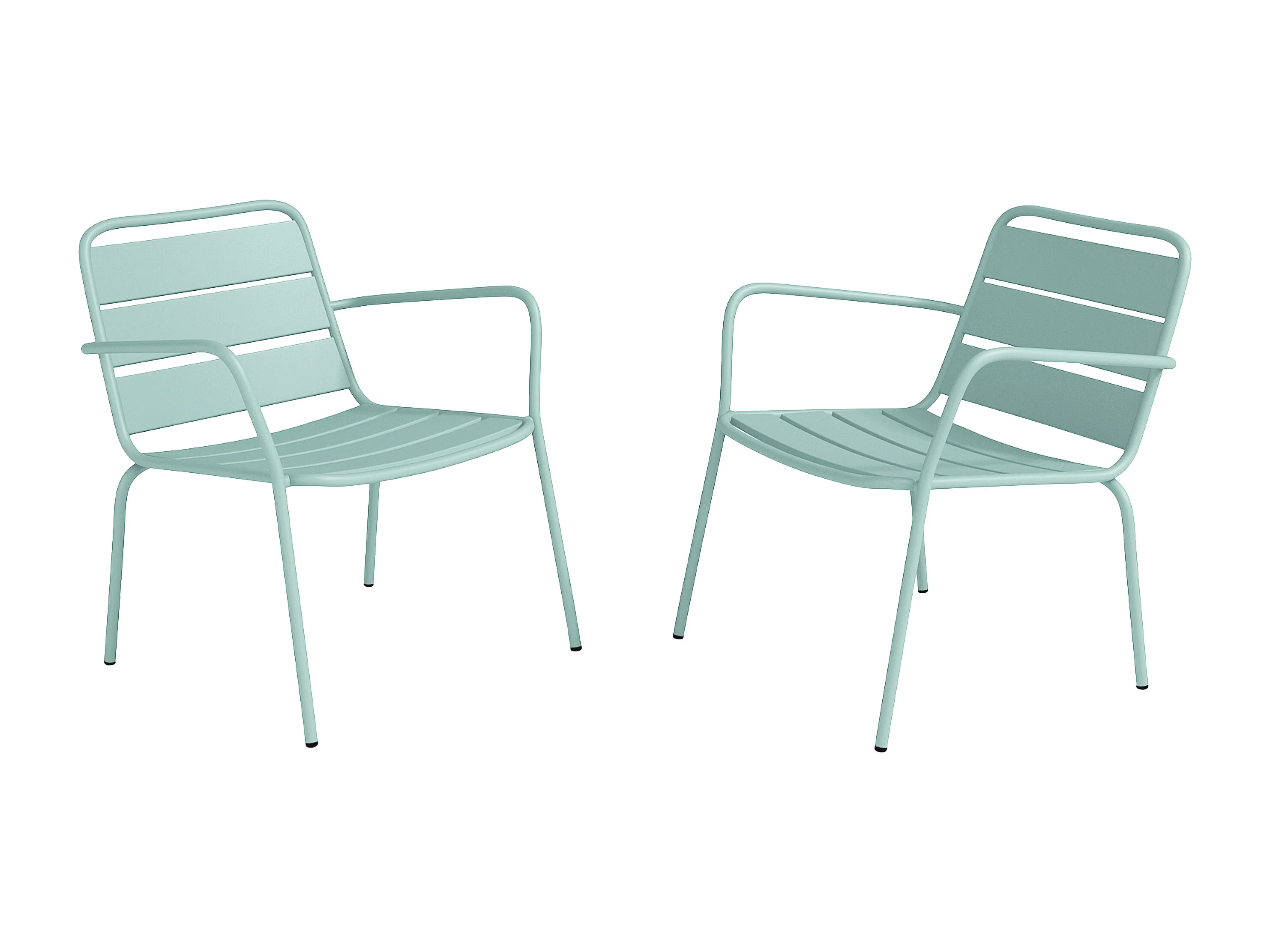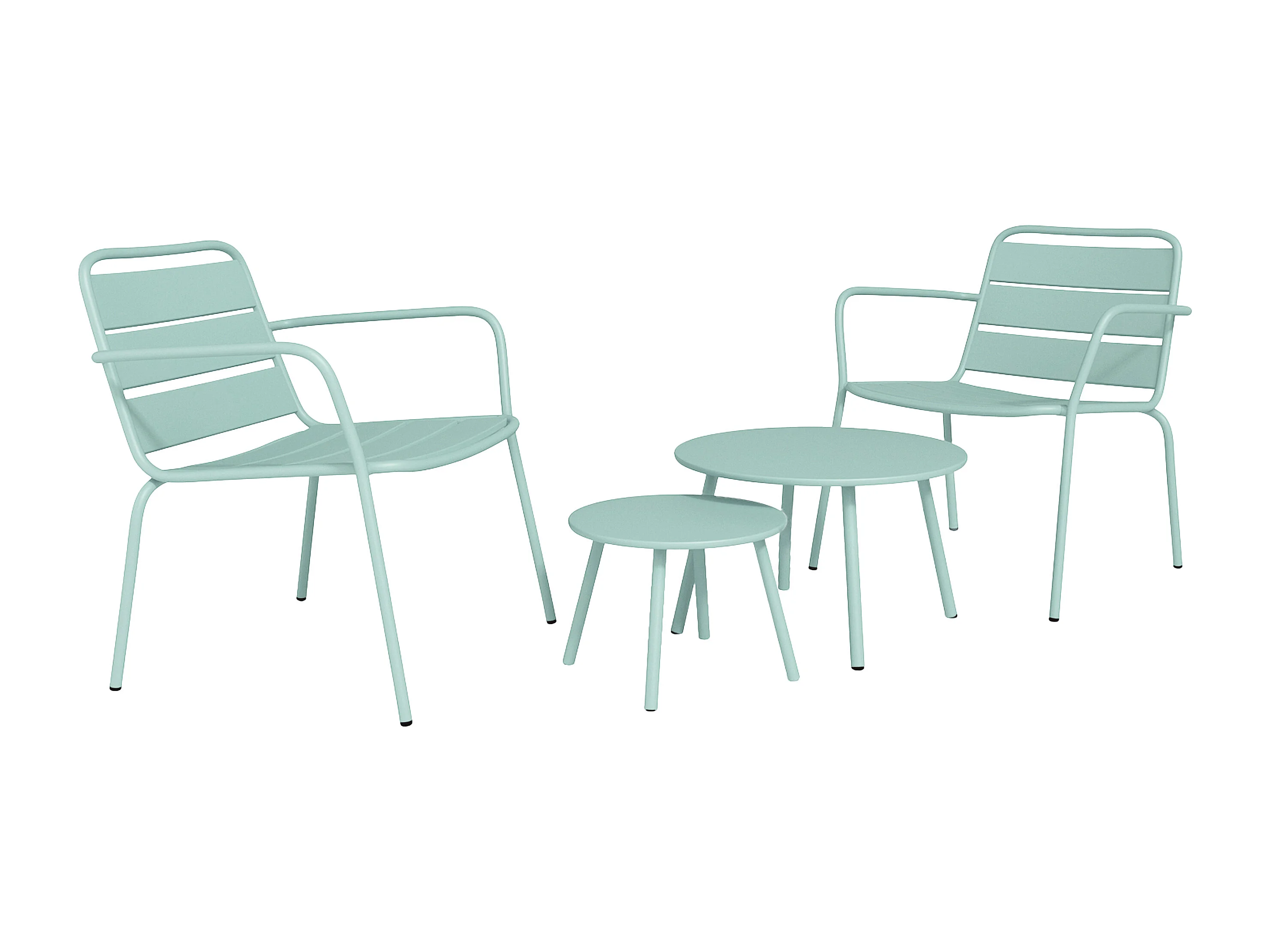 Loungeset MIRMANDE: 2 lage opstapelbare fauteuils met 2 bijzettafeltjes - Metaal - Amandelgroen