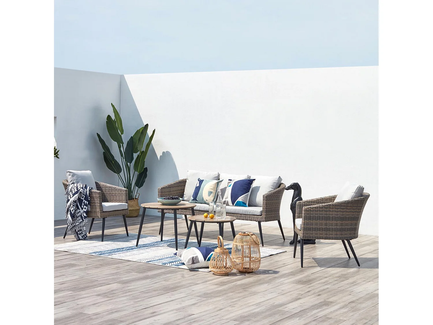 Loungeset Tibouta 5 plaatsen van gevlochten hars met schuine poten