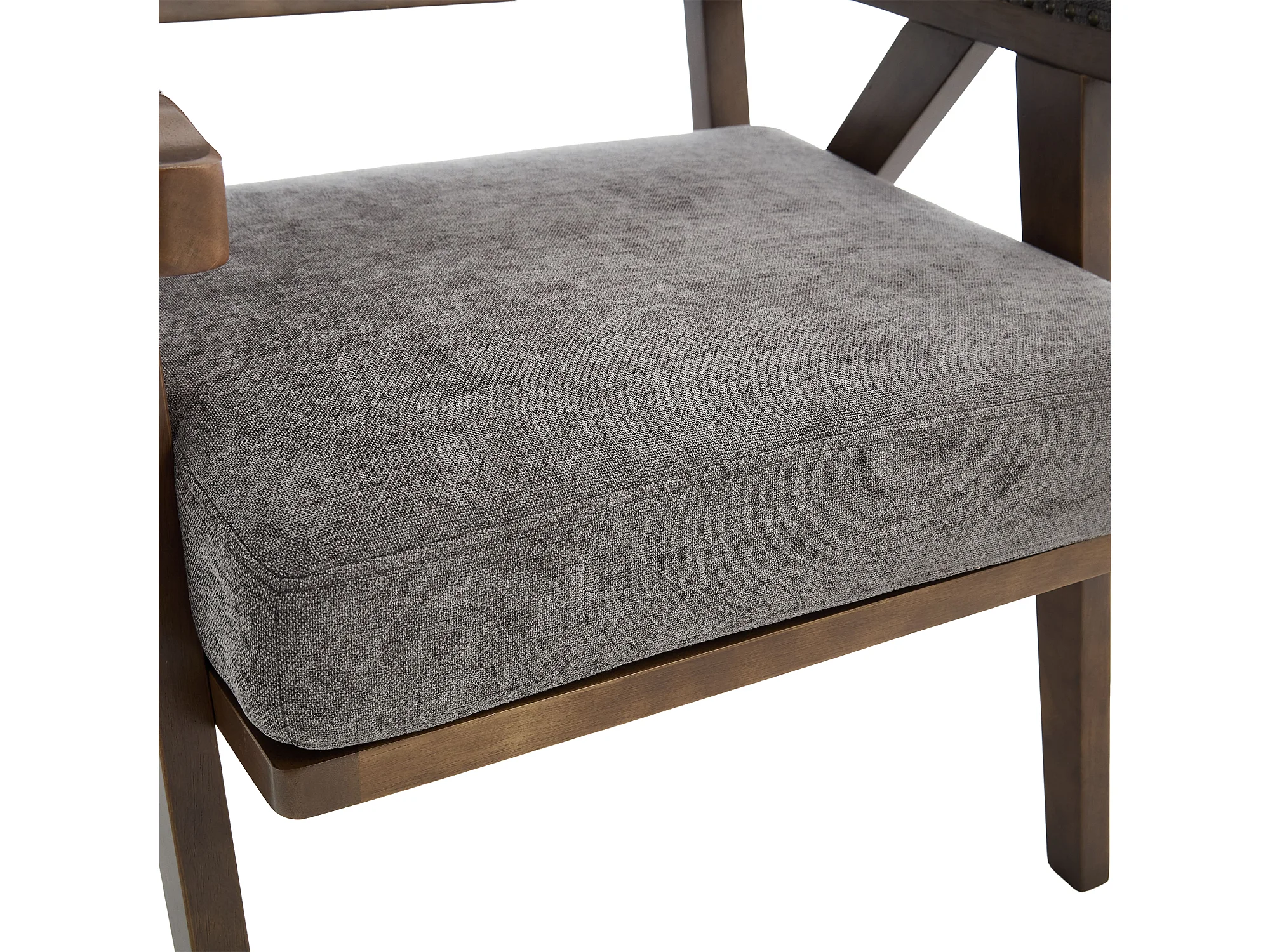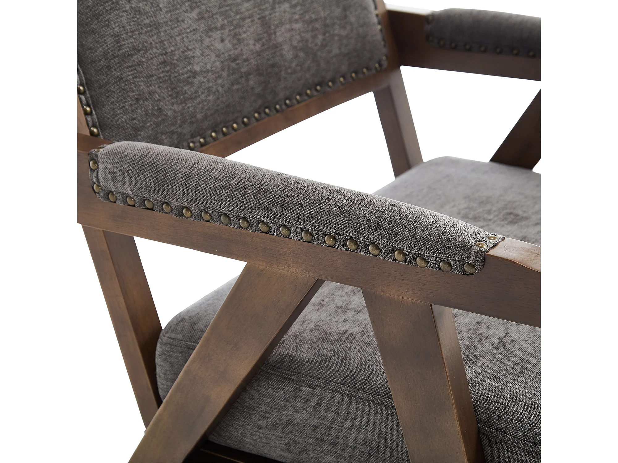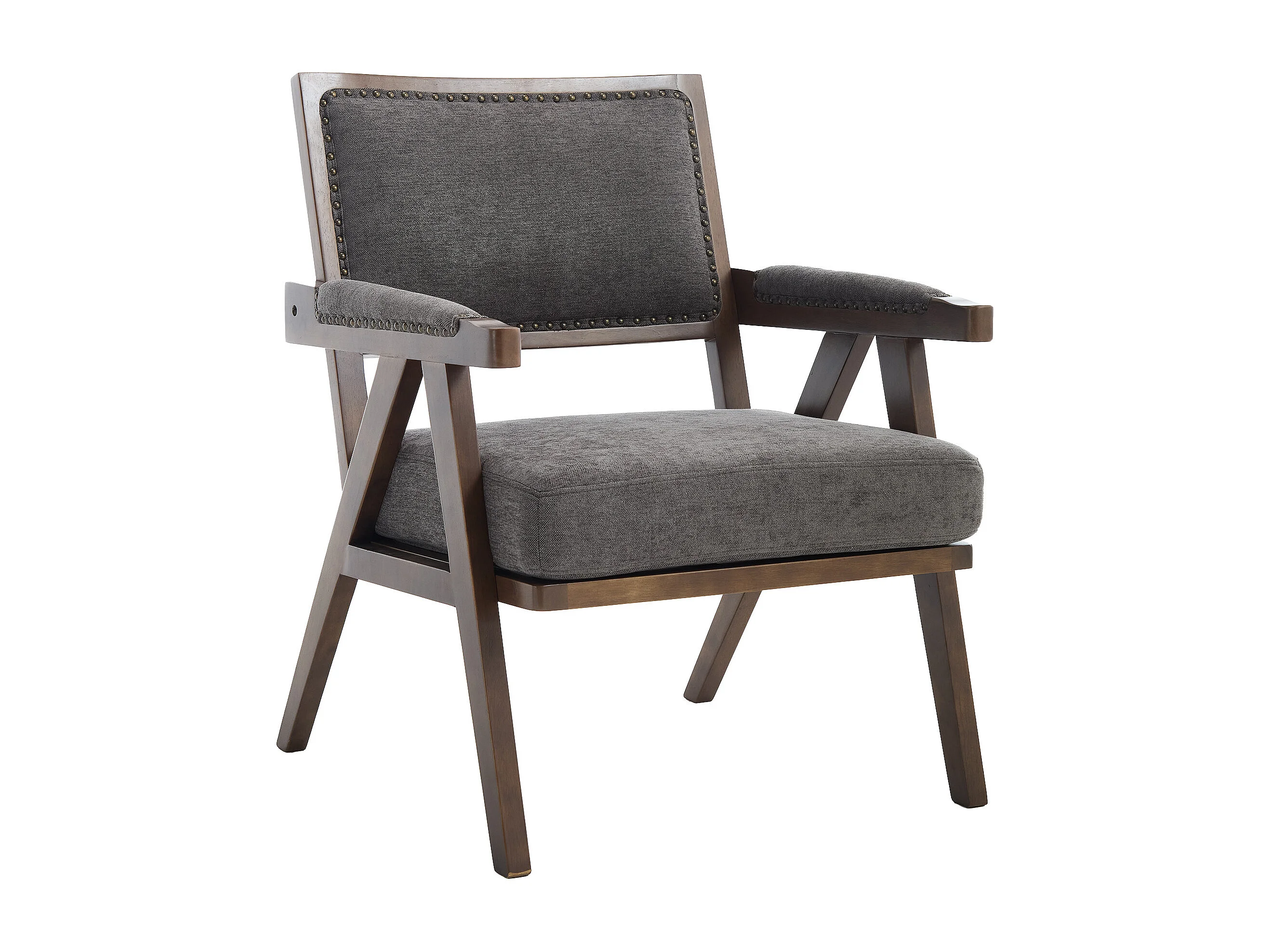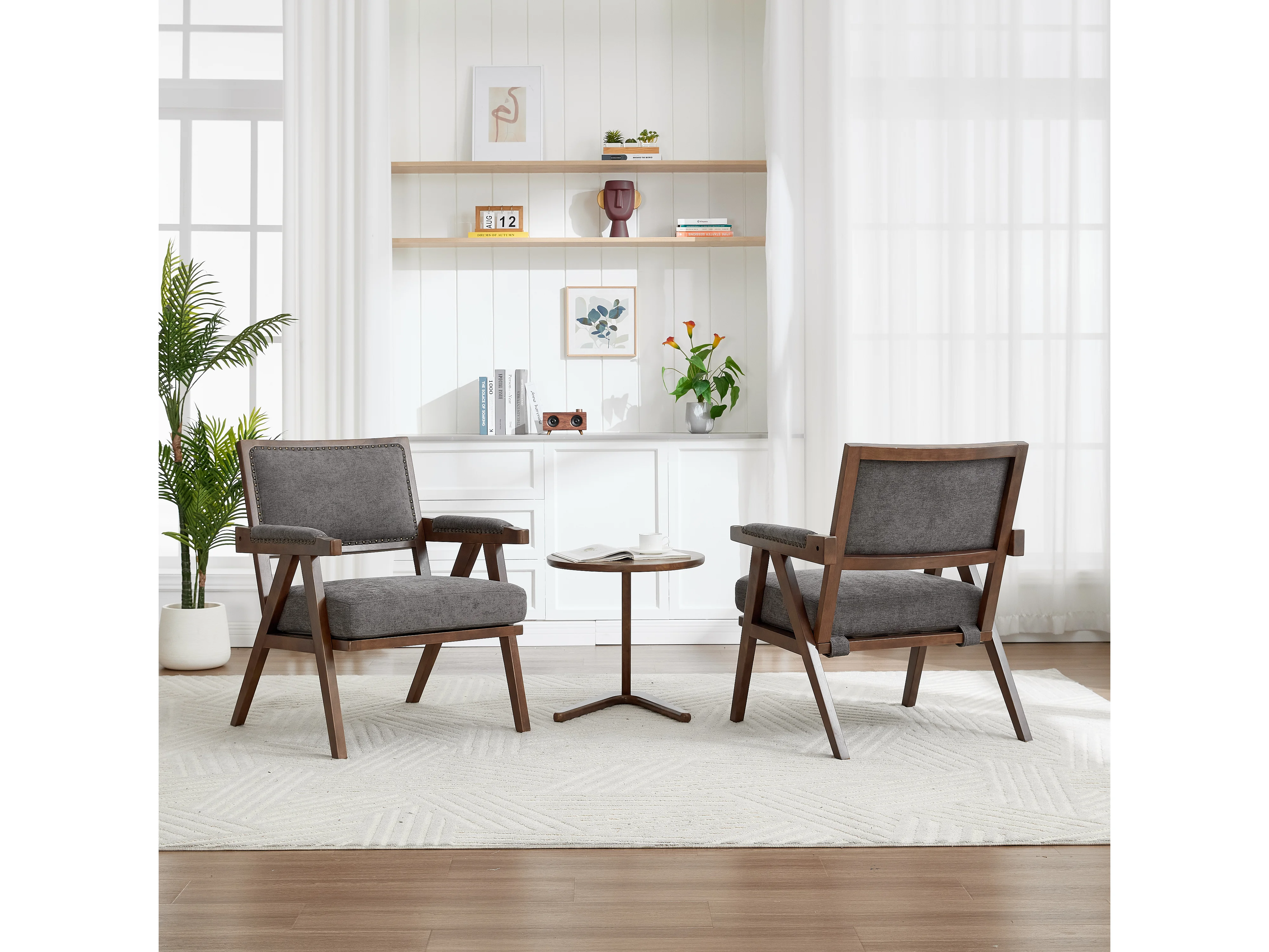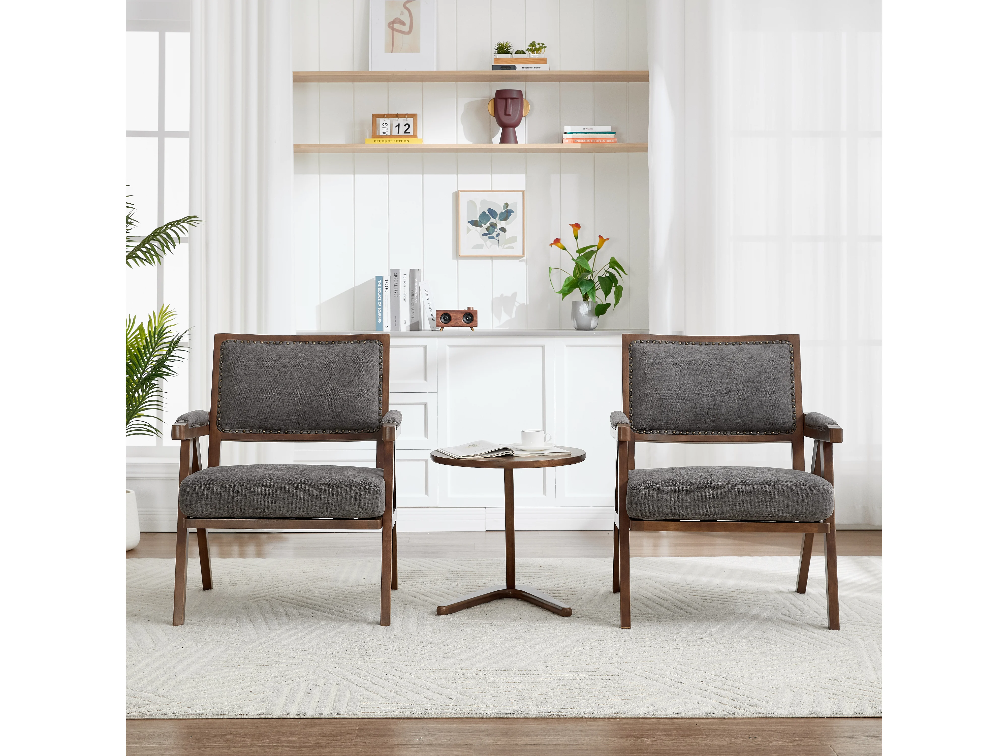 Loungestoel - 1-Zits Midden-Eeuws Fauteuil Met Armleuningen & Nieten - Massief Houten Frame, Verdikt Kussen - Linnen - Grijs