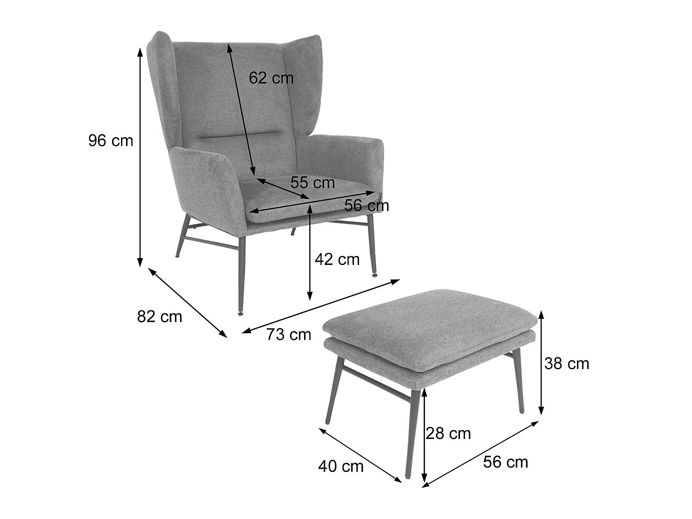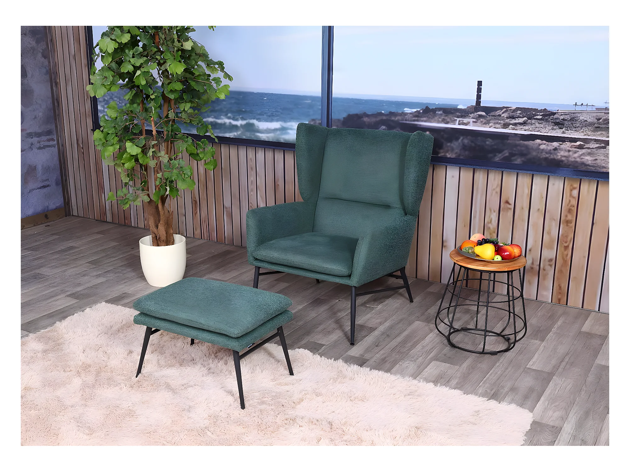 Loungefauteuil met voetenbank MCW-L62, groen
